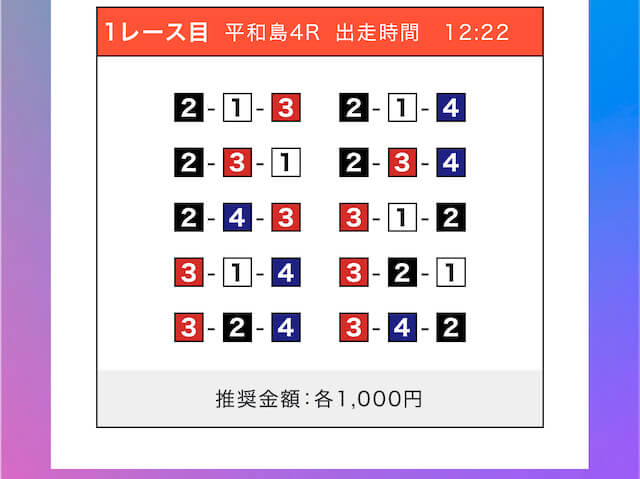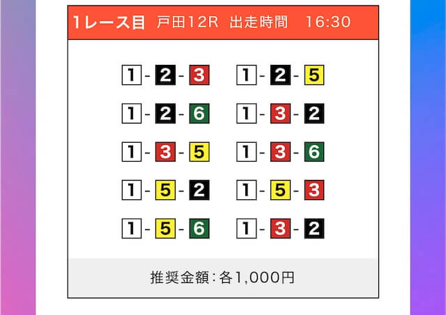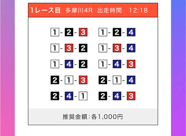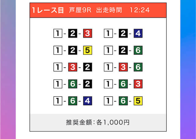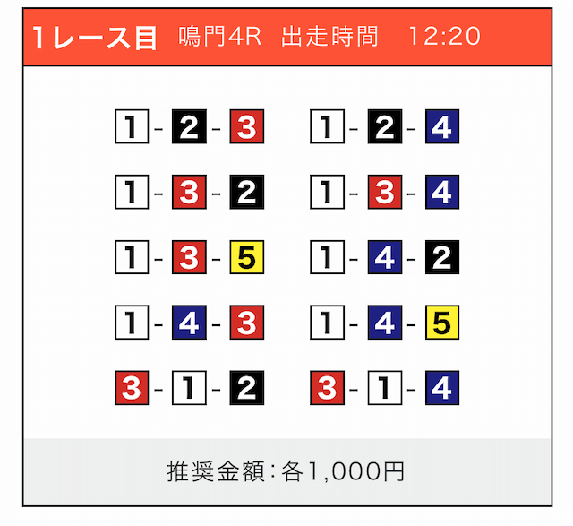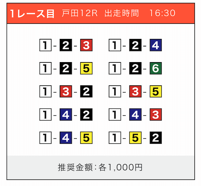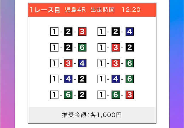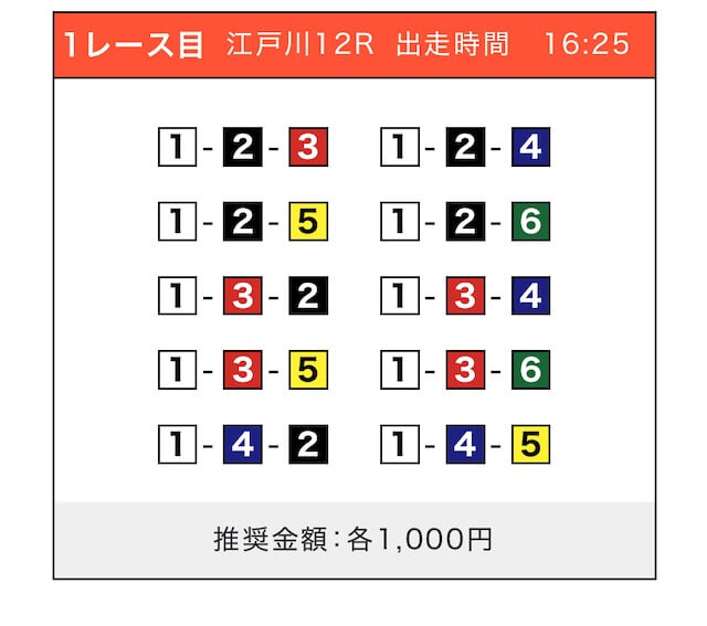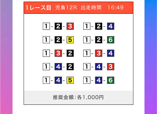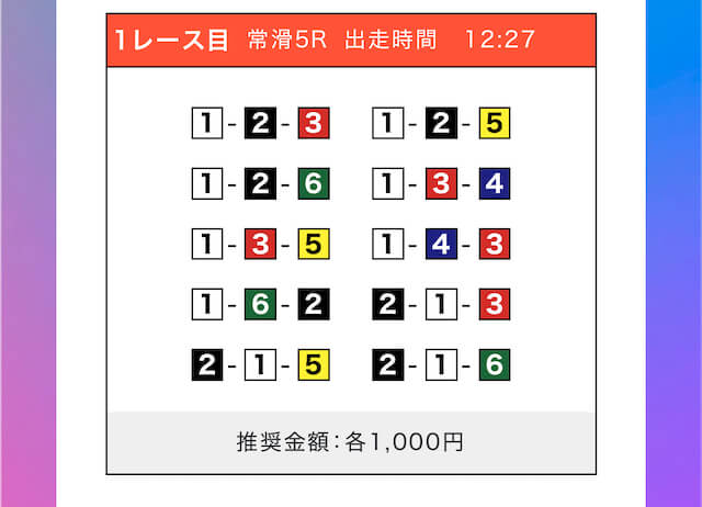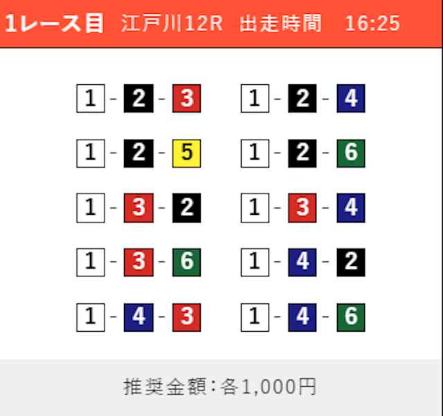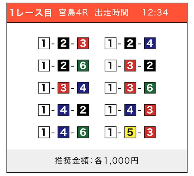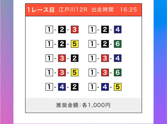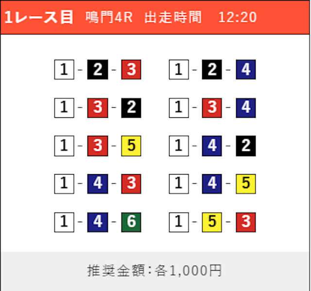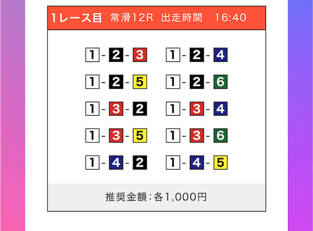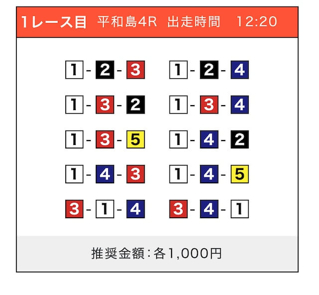 買い目は①-②-流、①-③-②④・①-④-②③⑤と、内枠を信頼しています。