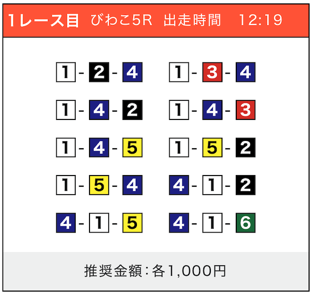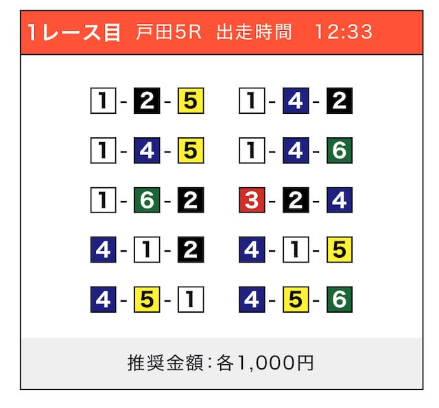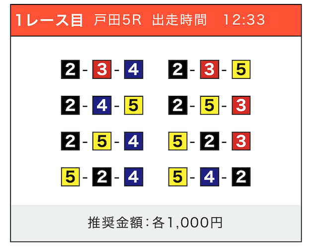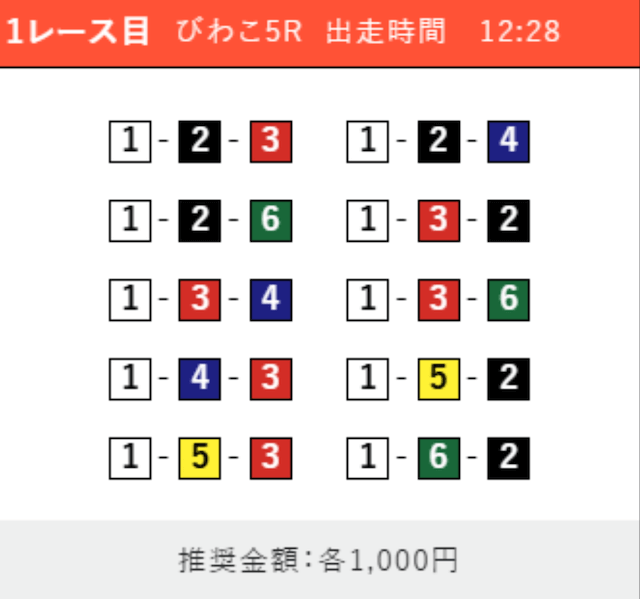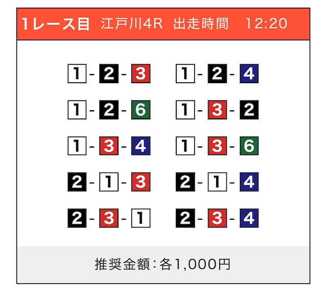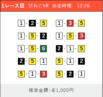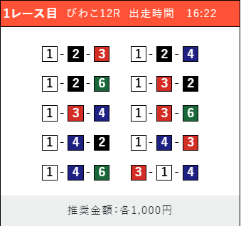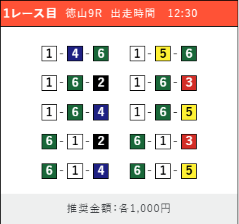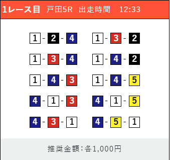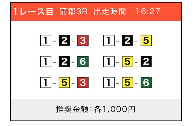 - 推奨舟券代:1点100円〜1,000円