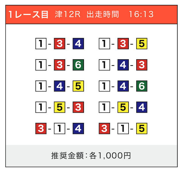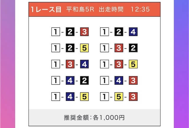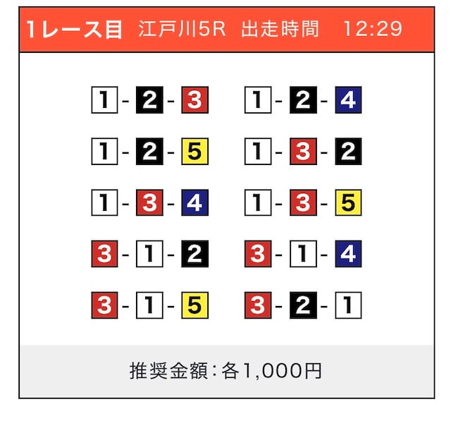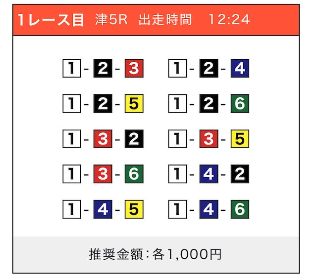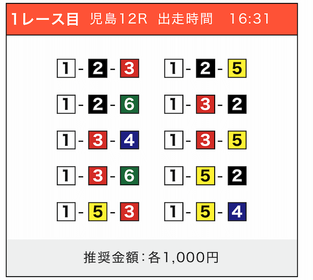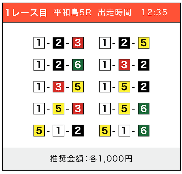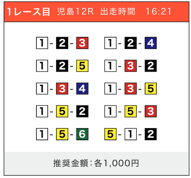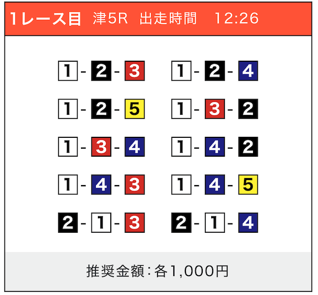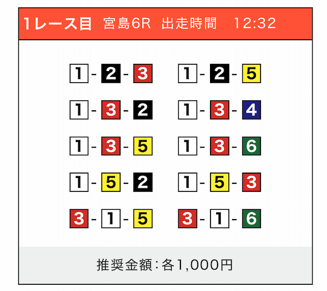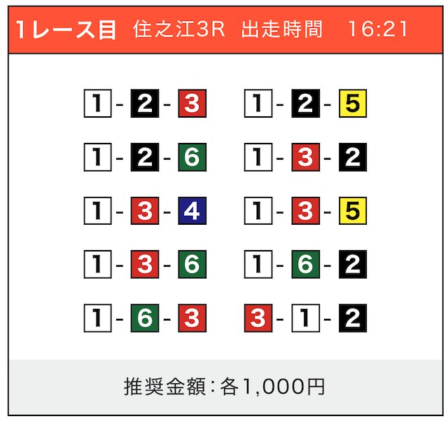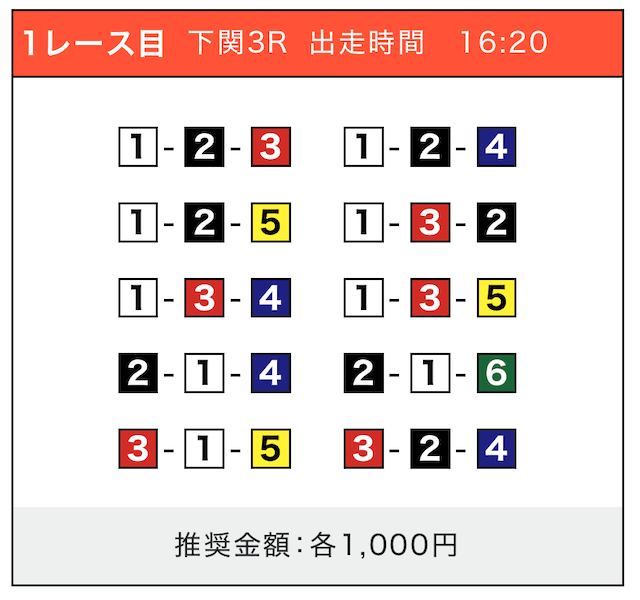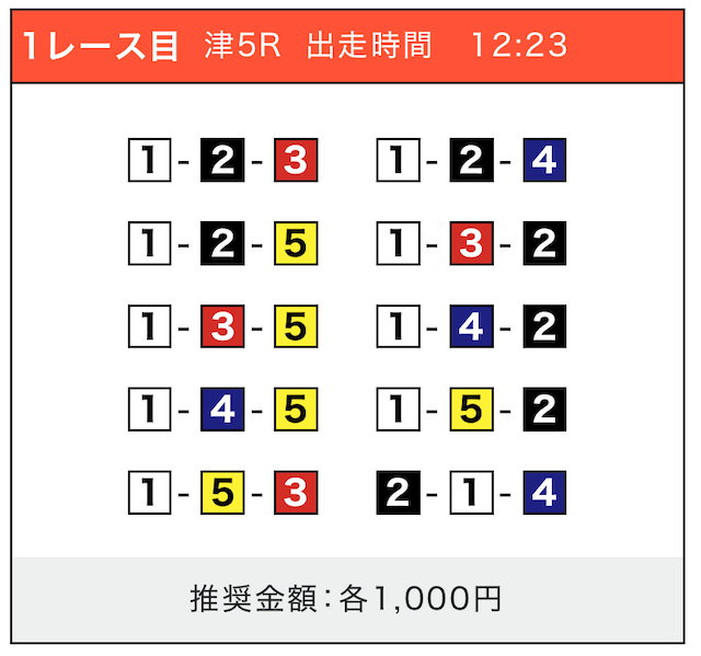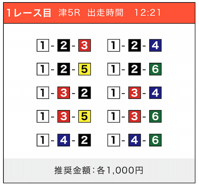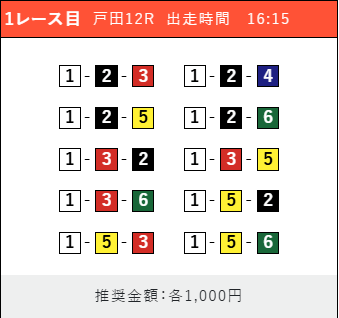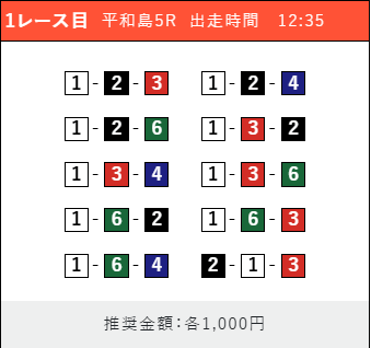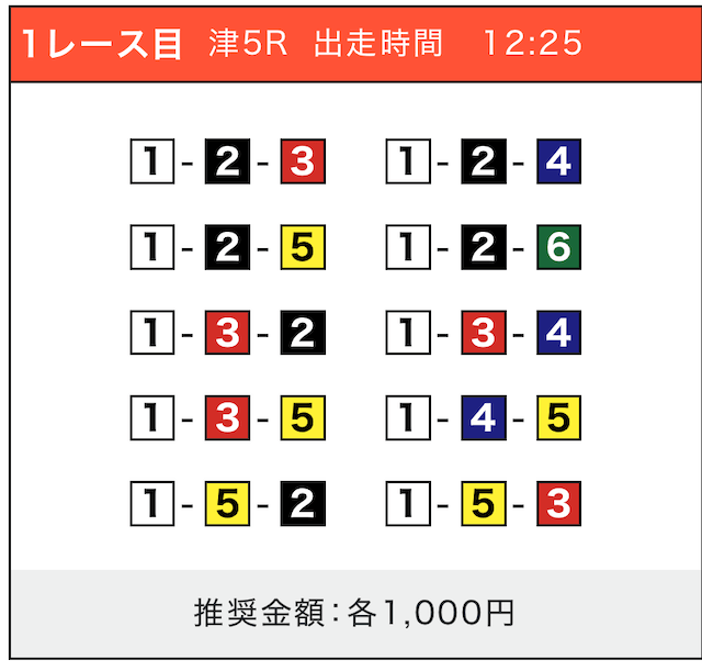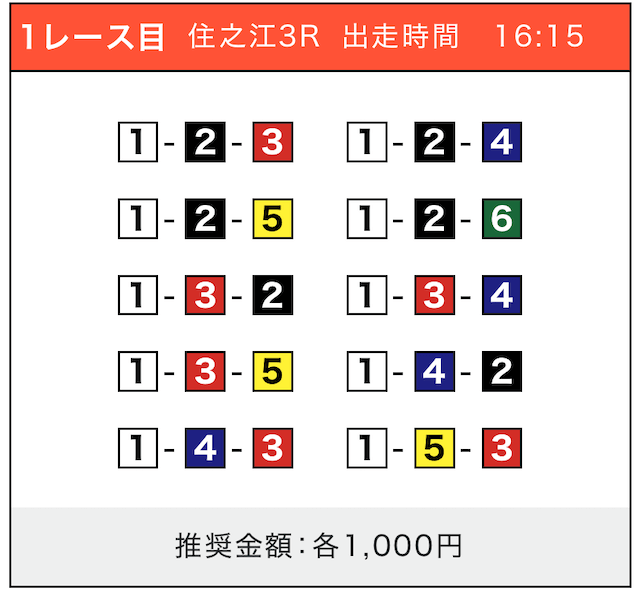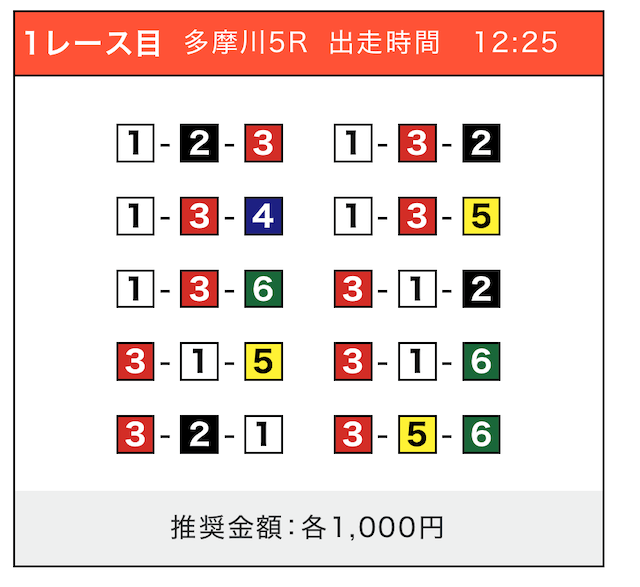 - 券種:3連単(5〜10点)