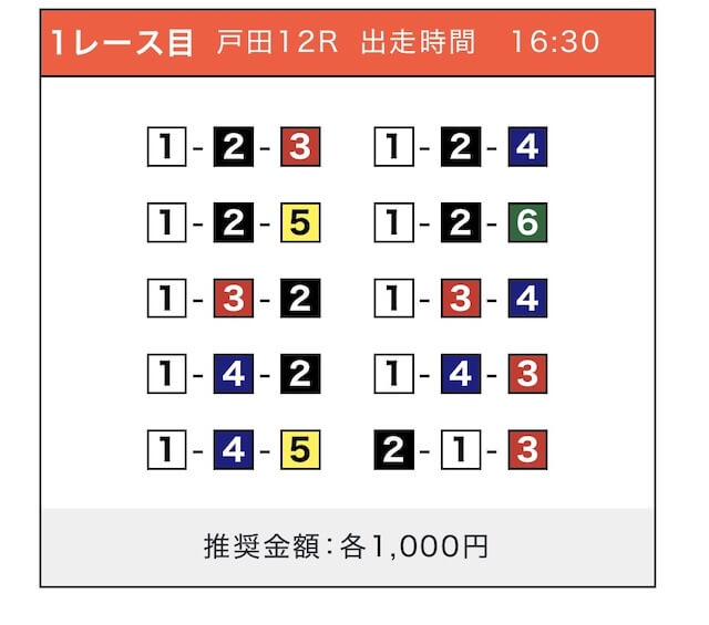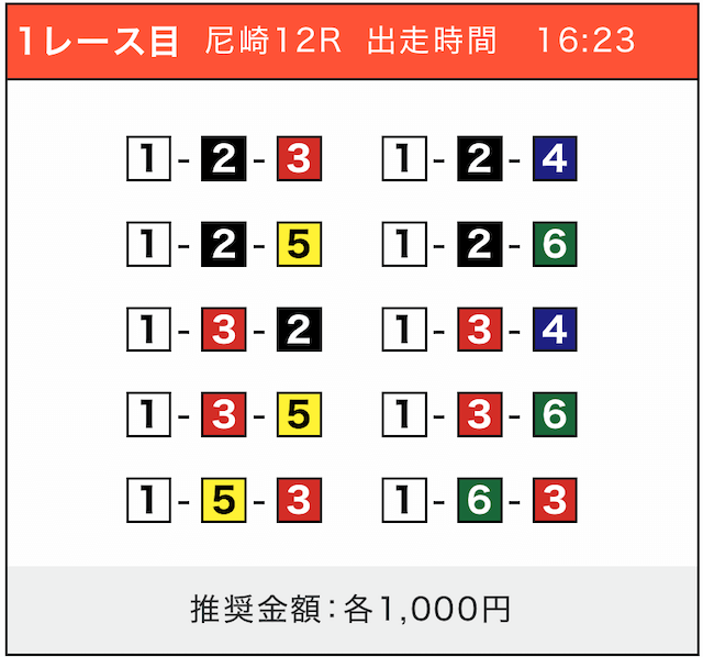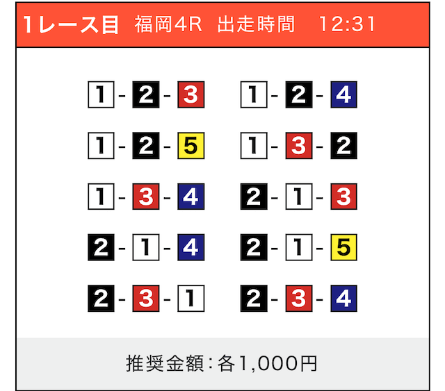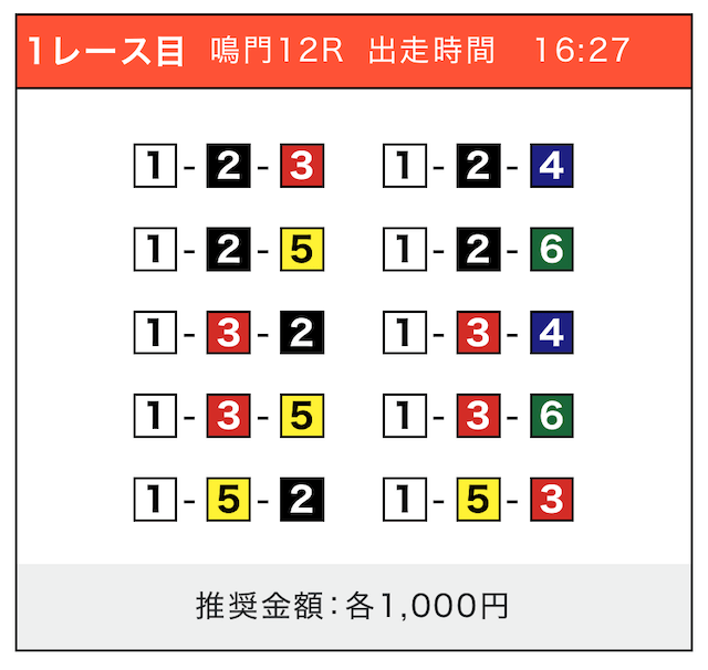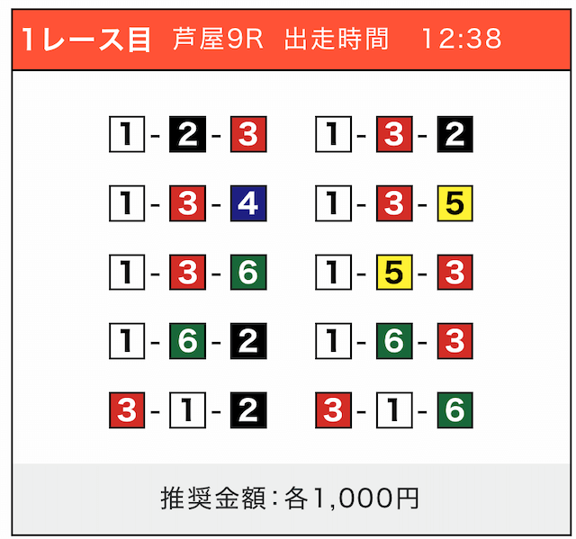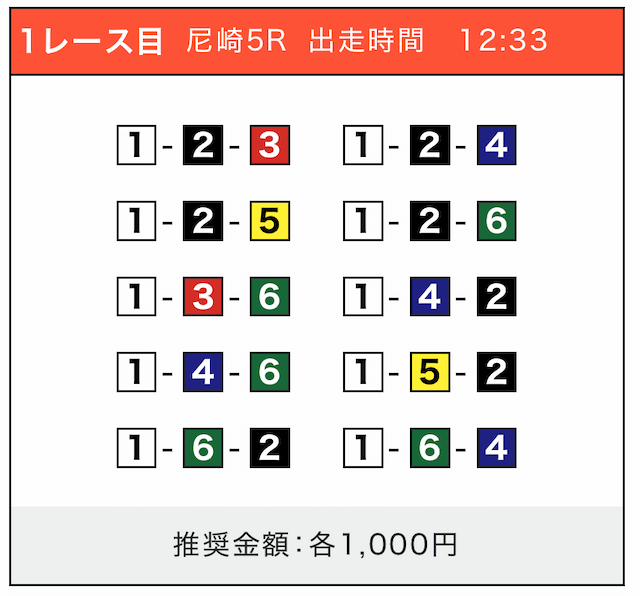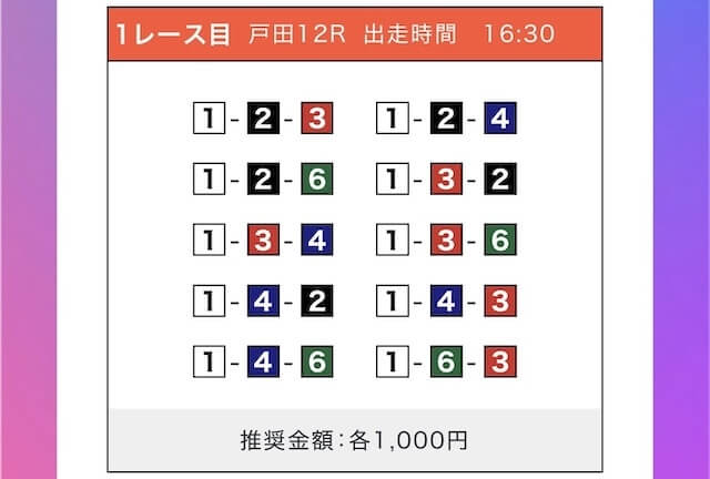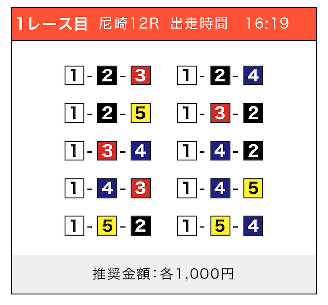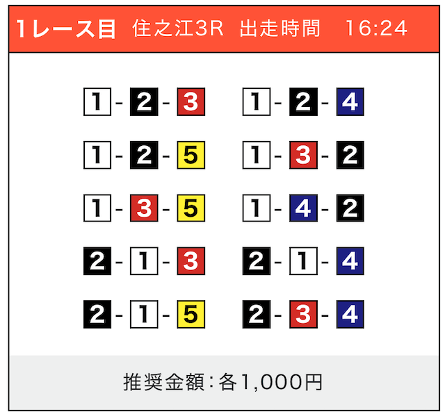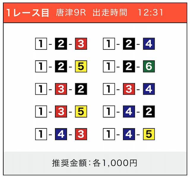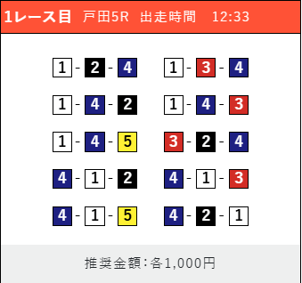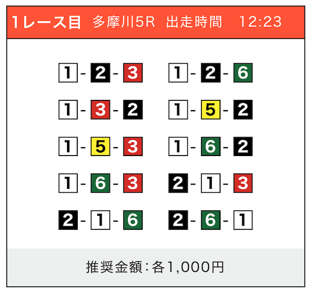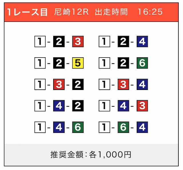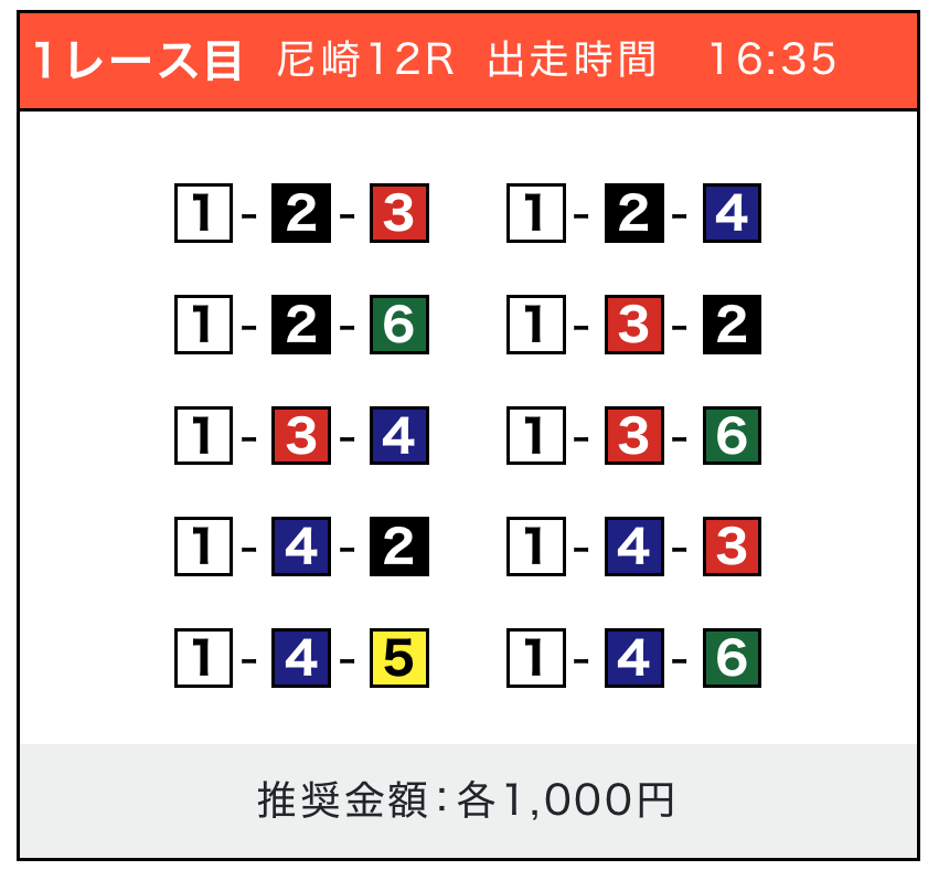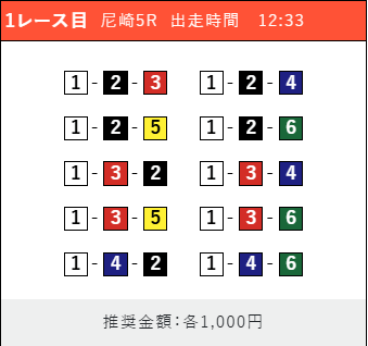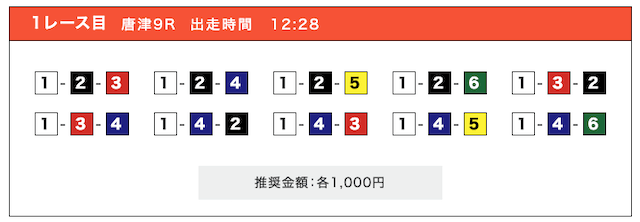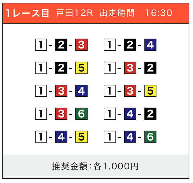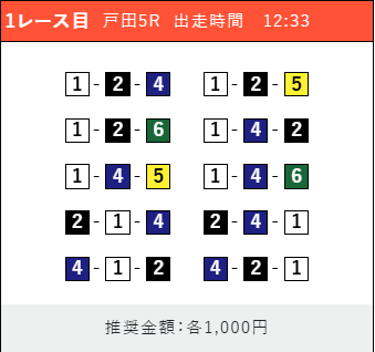 - 券種:3連単(5〜10点)