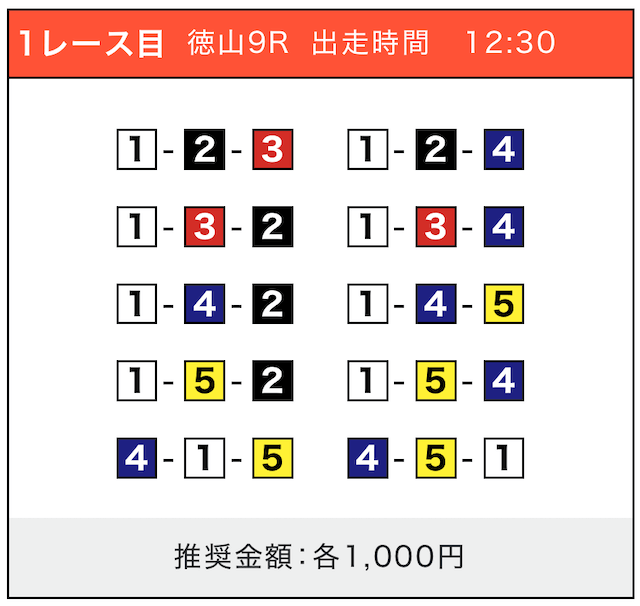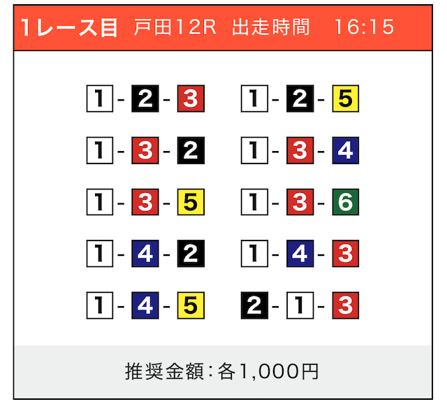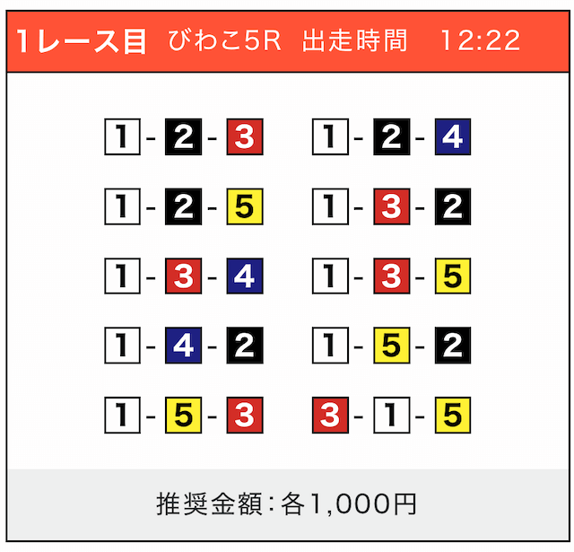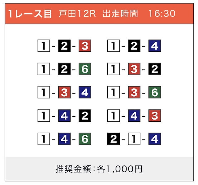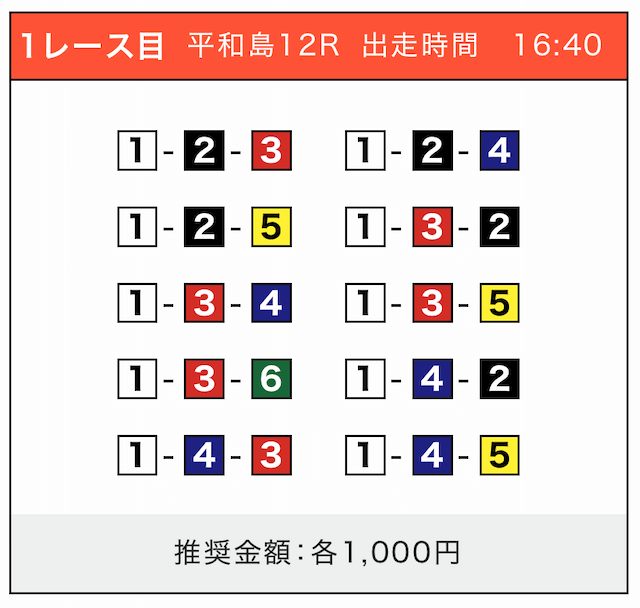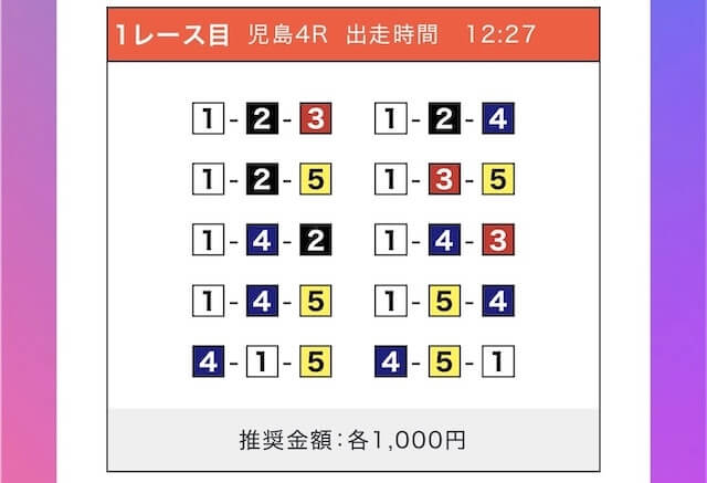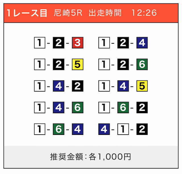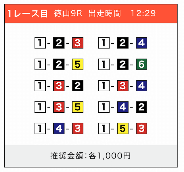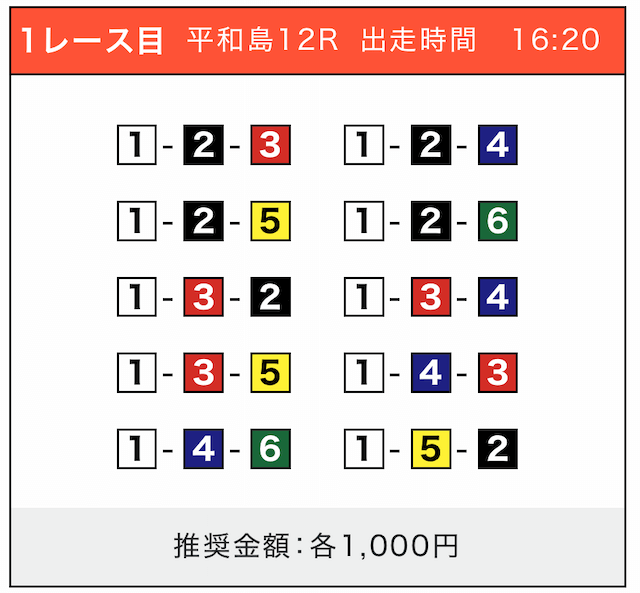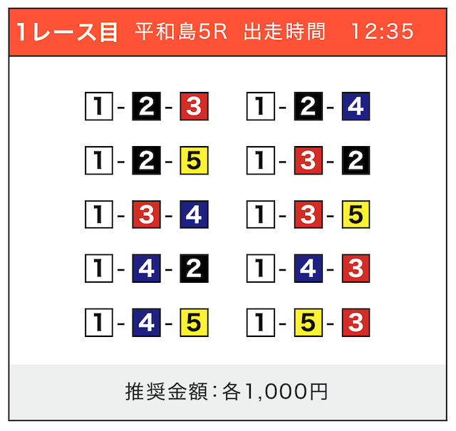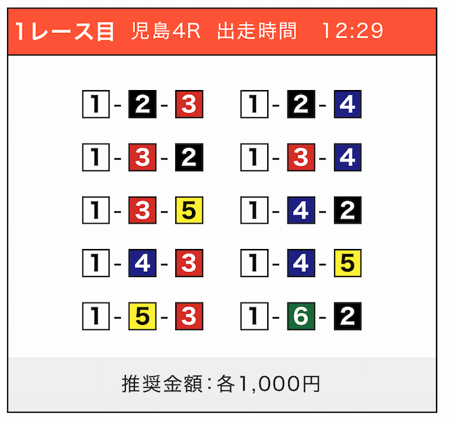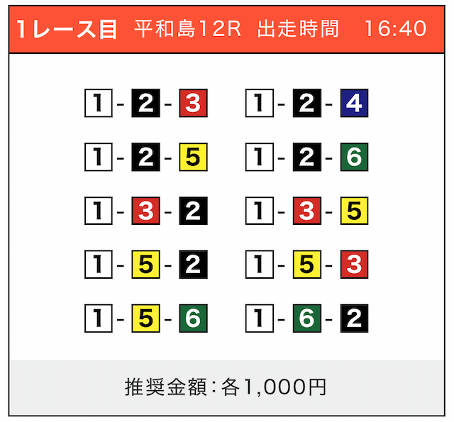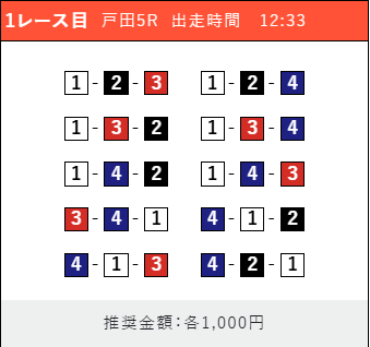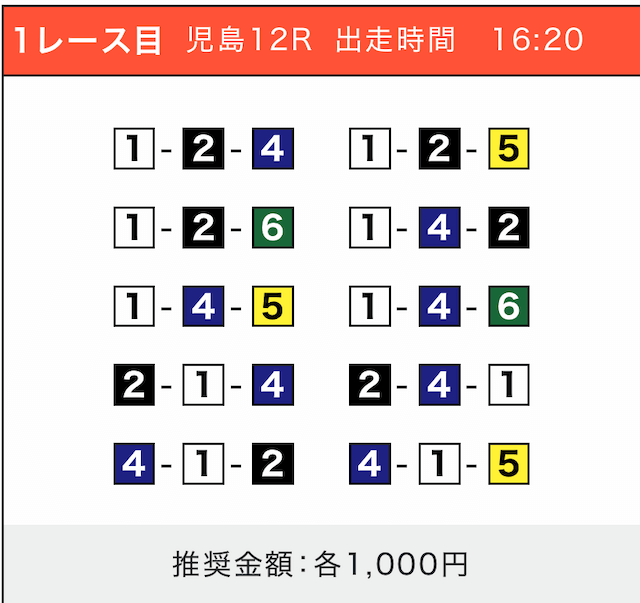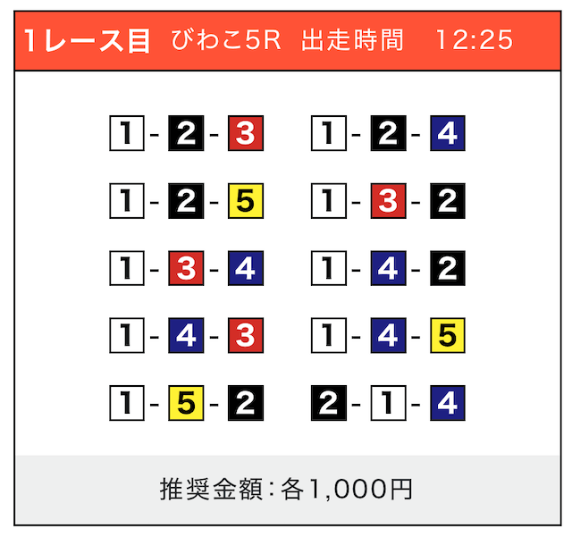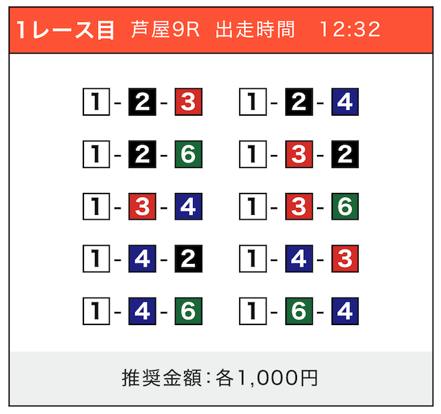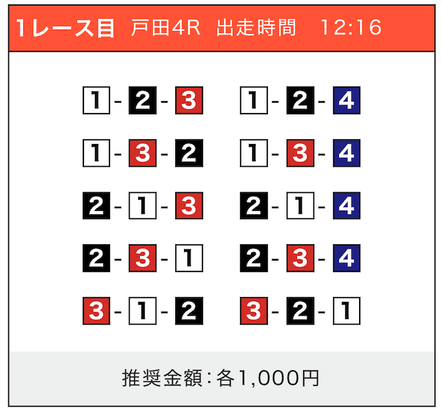 - 券種:3連単(5〜10点)