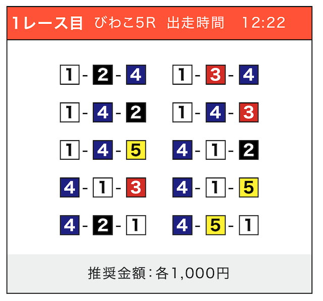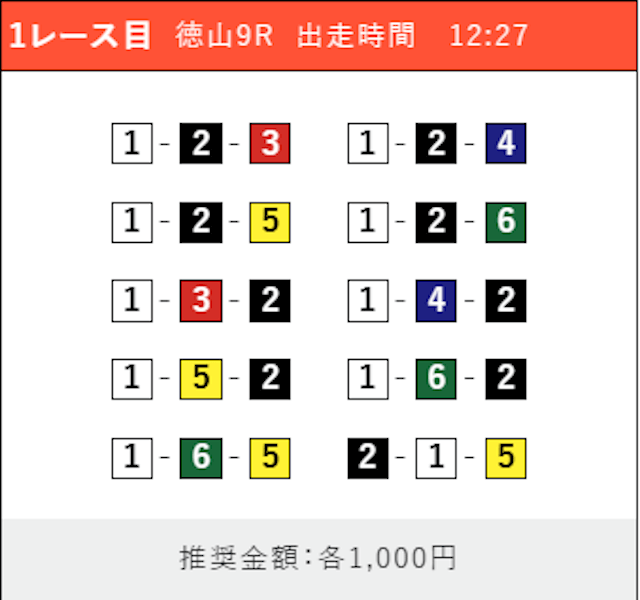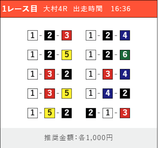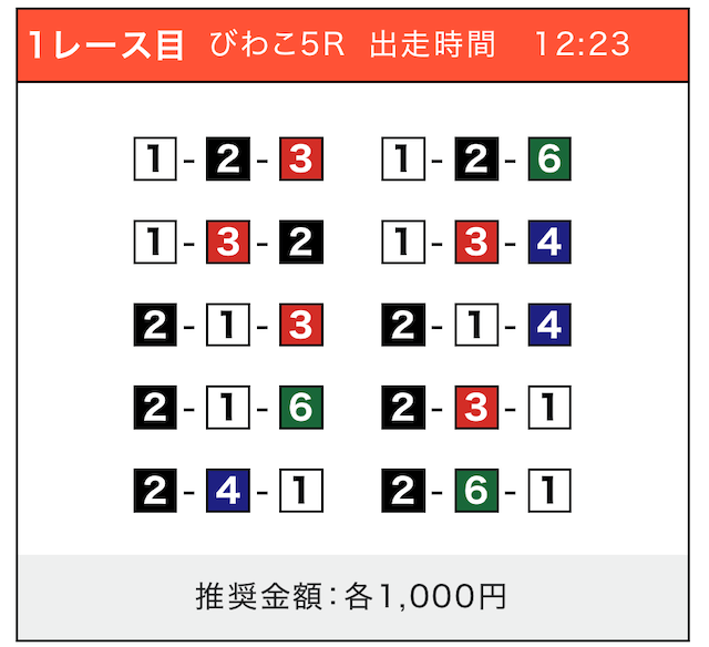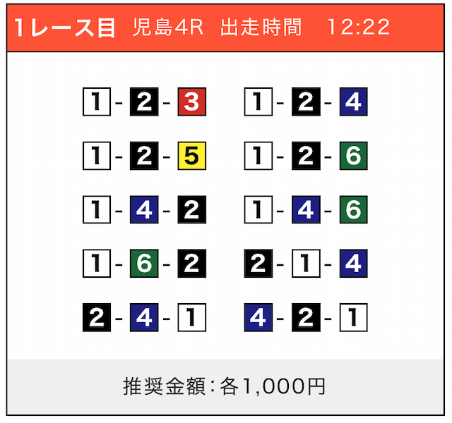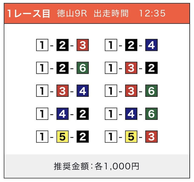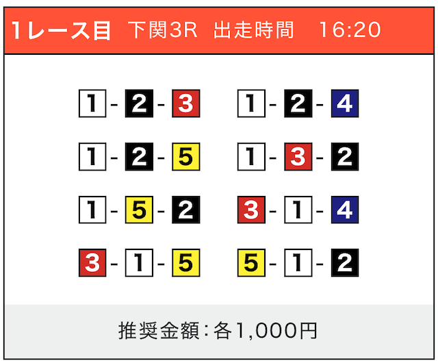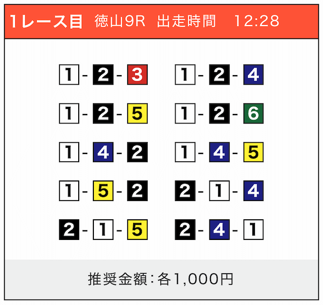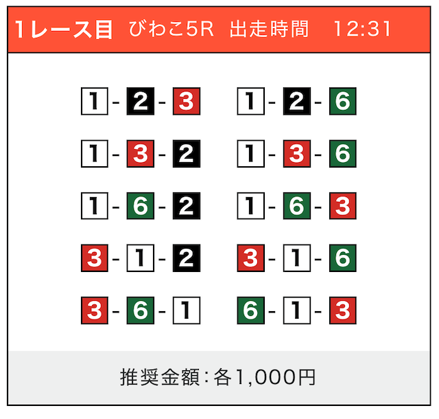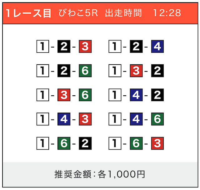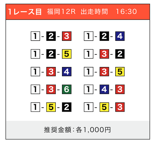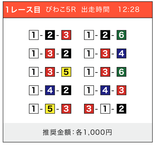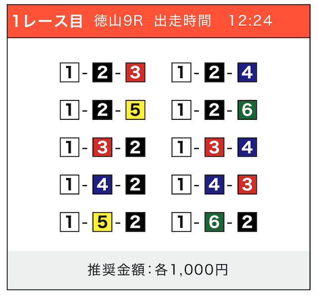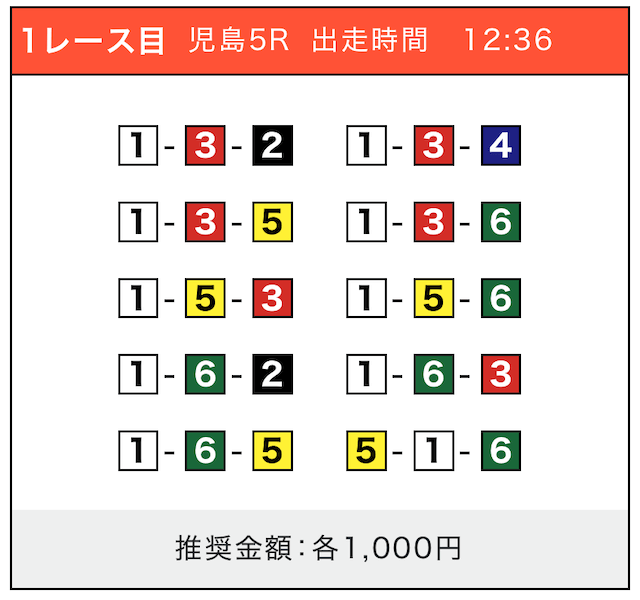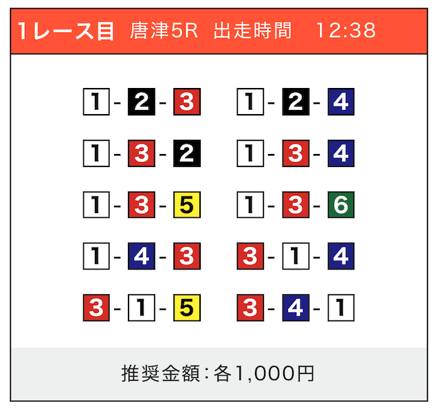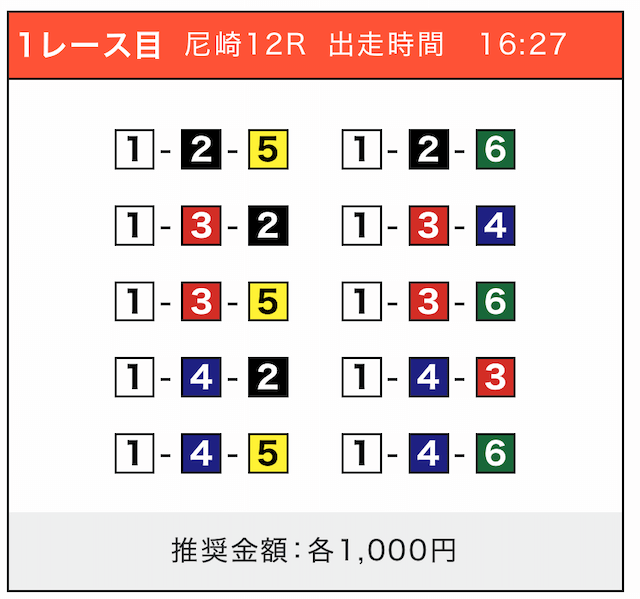 - 券種:3連単(5〜10点)
