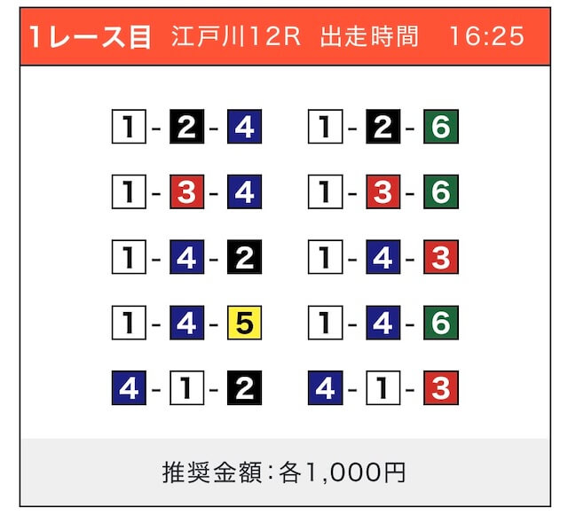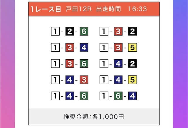 無料予想だけで3日間で+5万円いけました!配信された買い目にそのまま乗っただけですが、オッズもそこそこあってトリガミ無し。短期でしっかり稼げる印象です。
