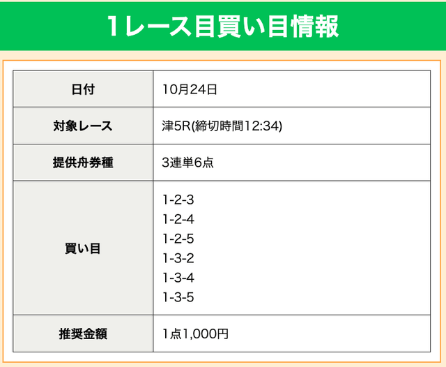 | 2024/2/24 わくわく単発 情報料金+舟券代 6,000円+12,000円 |
