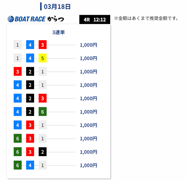 - 舟券代:計6,000円(1点1,000円)