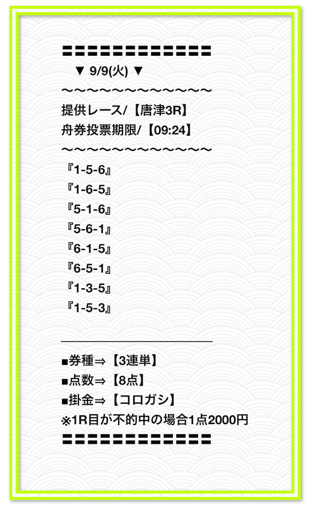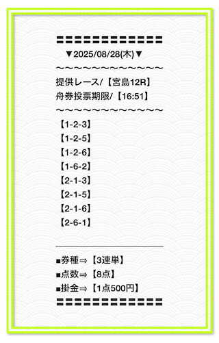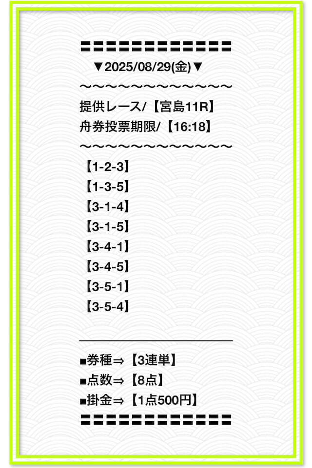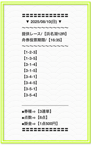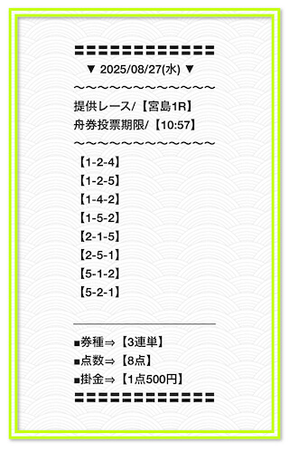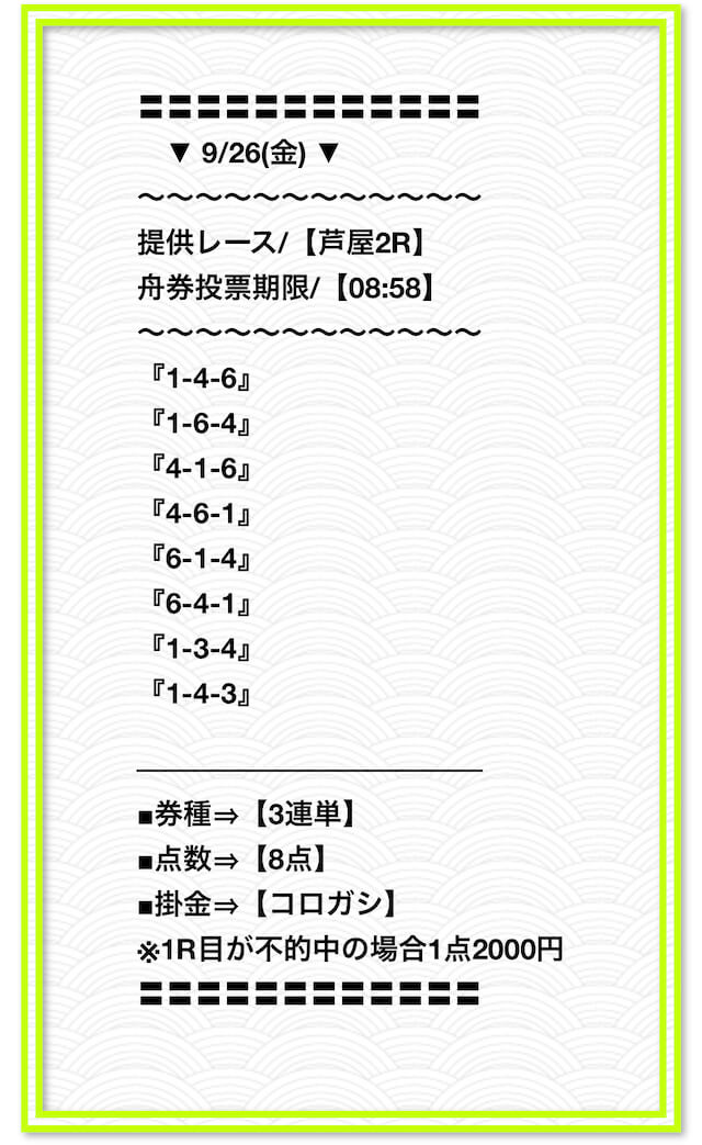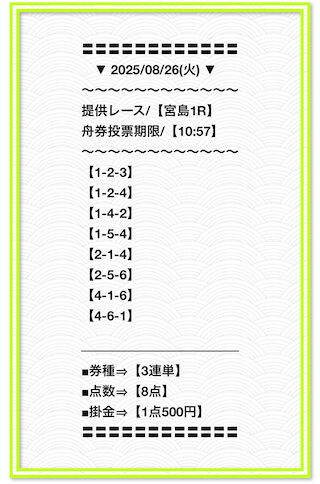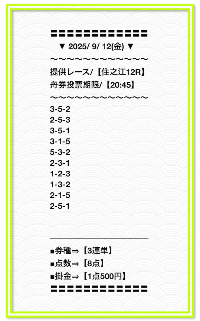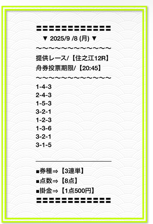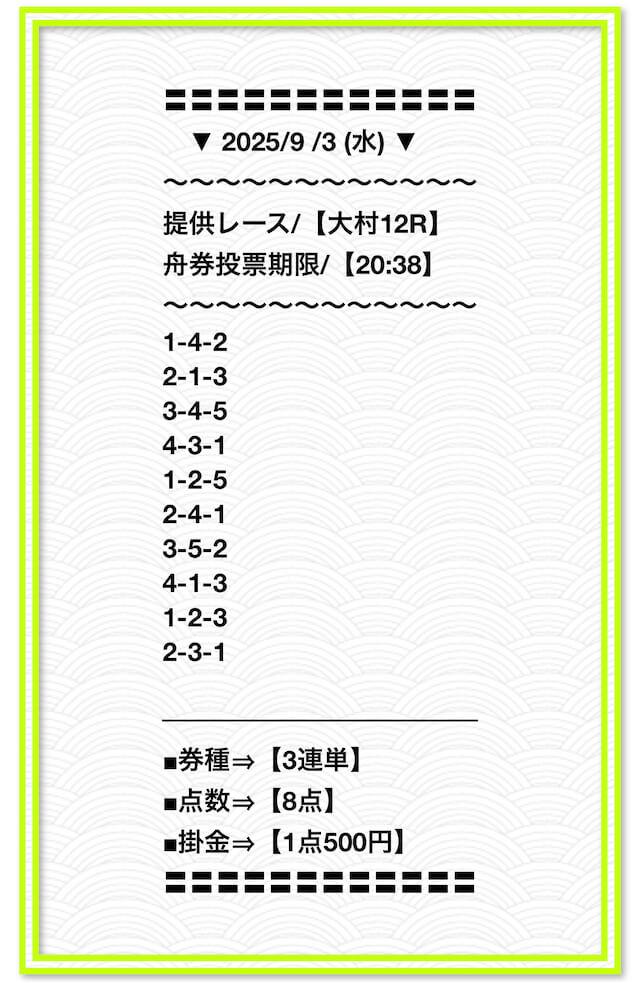 2025/2/1 非公開情報【白星のカリスマ】 情報料金+舟券代 50,000円+20,000円 |