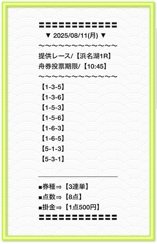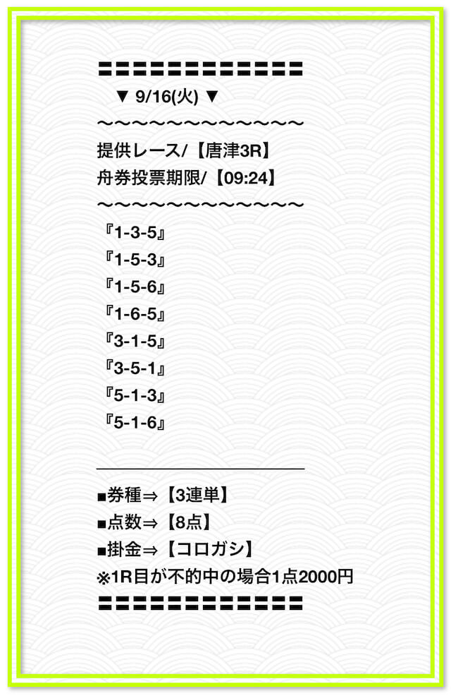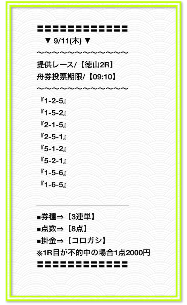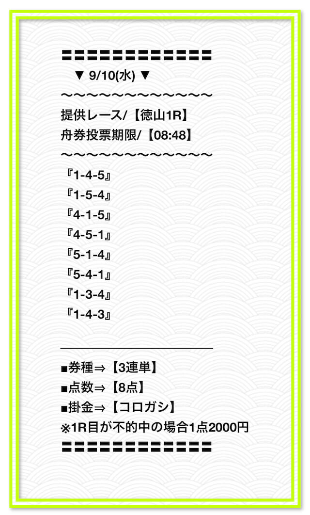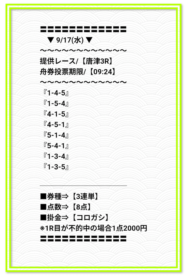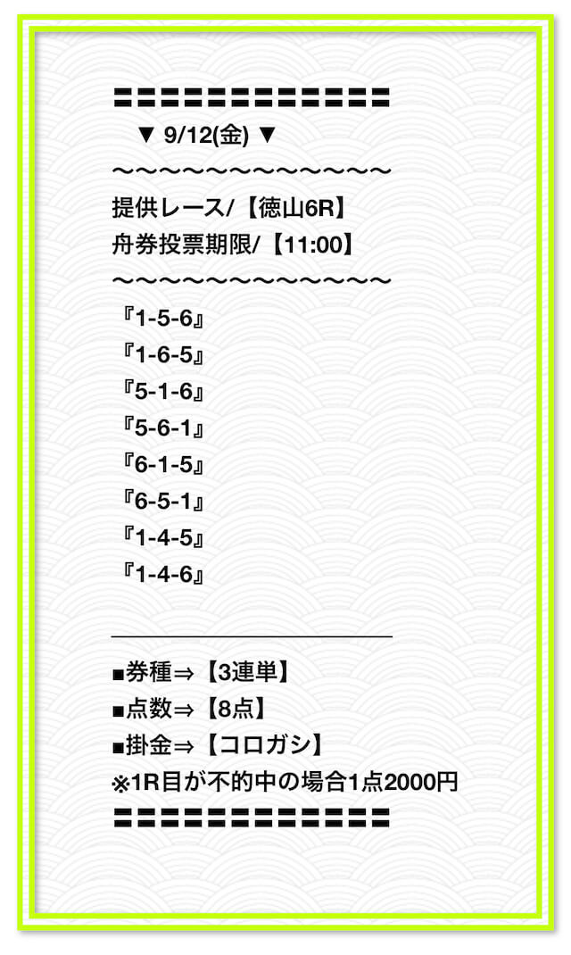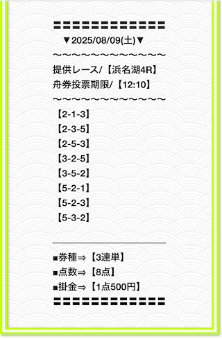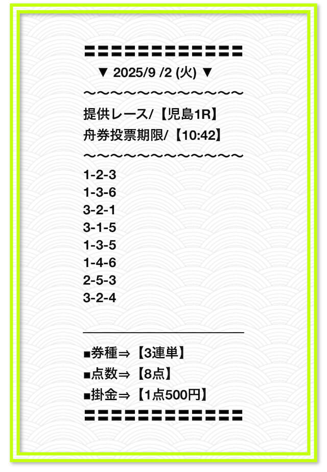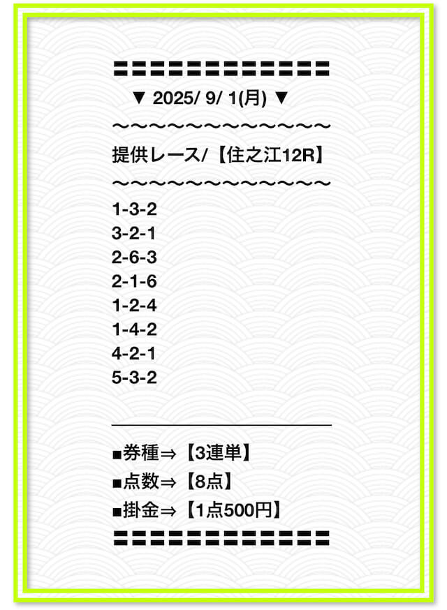 2025/2/1 非公開情報【白星のカリスマ】 情報料金+舟券代 50,000円+20,000円 |