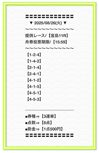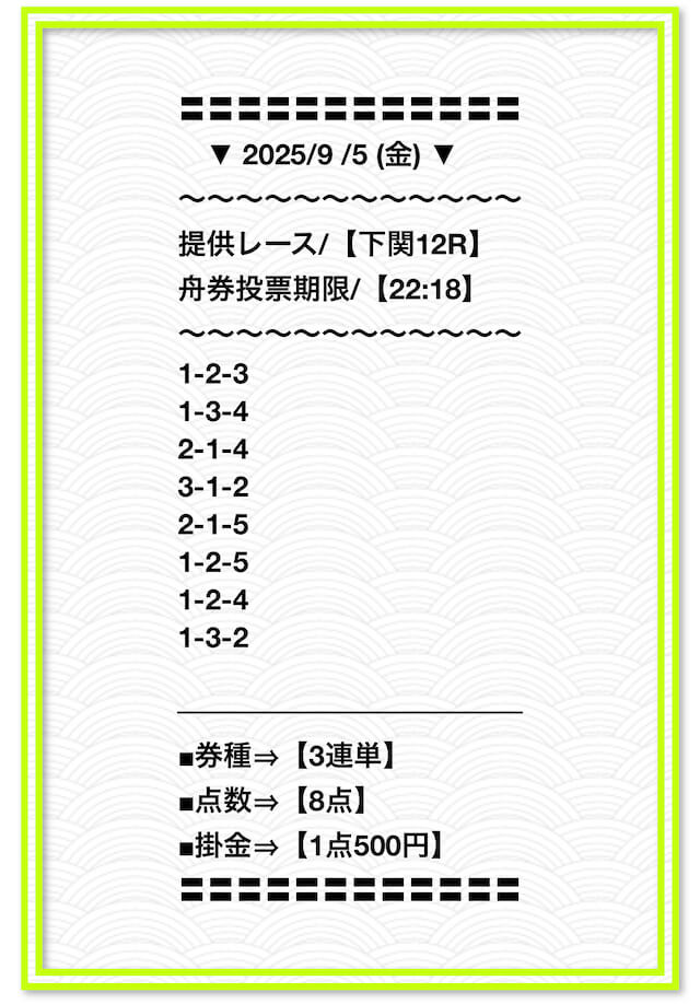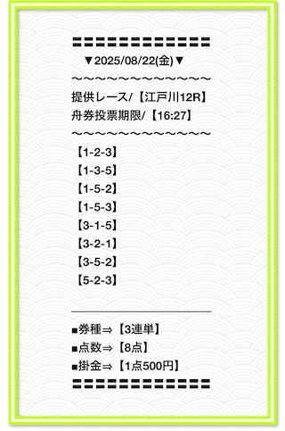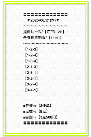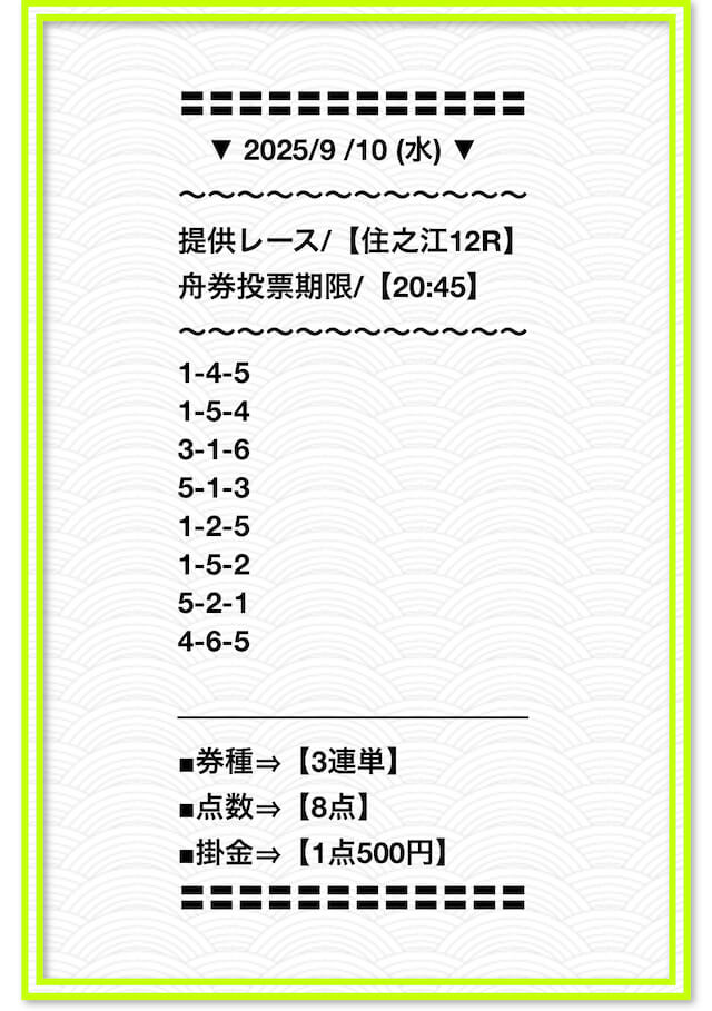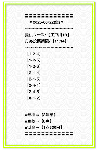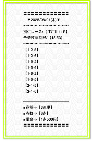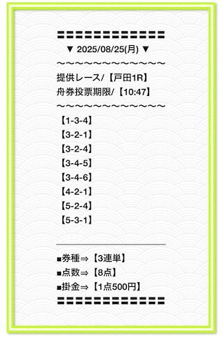 2025/6/22 関東的中戦線 情報料金+舟券代 40,000円+10,000円 |