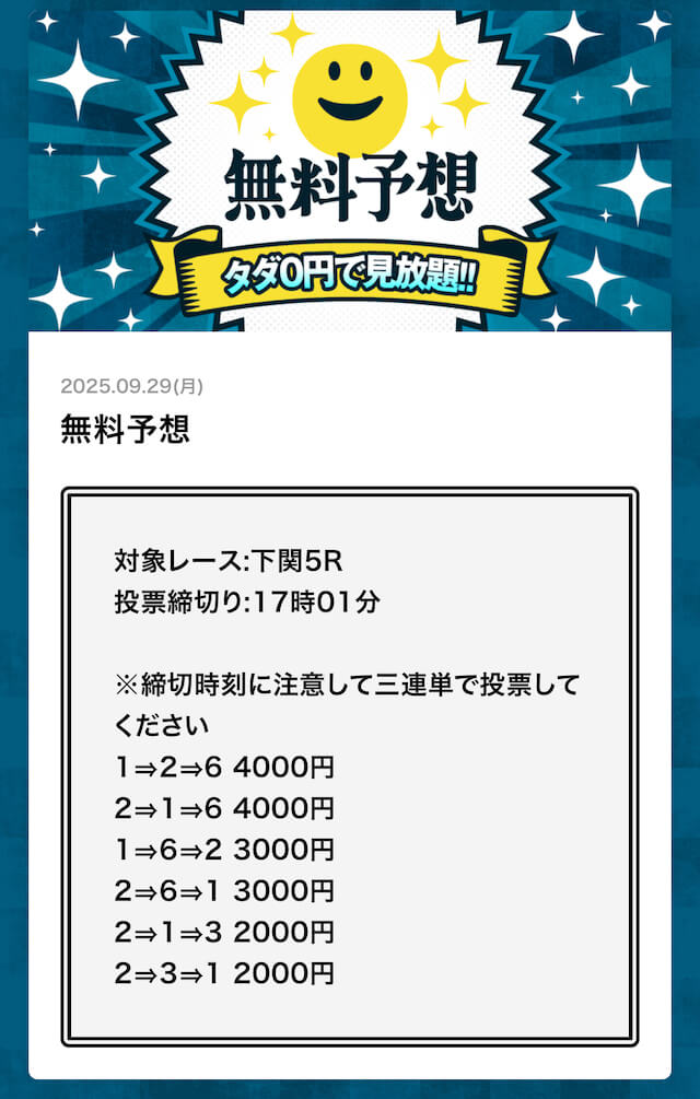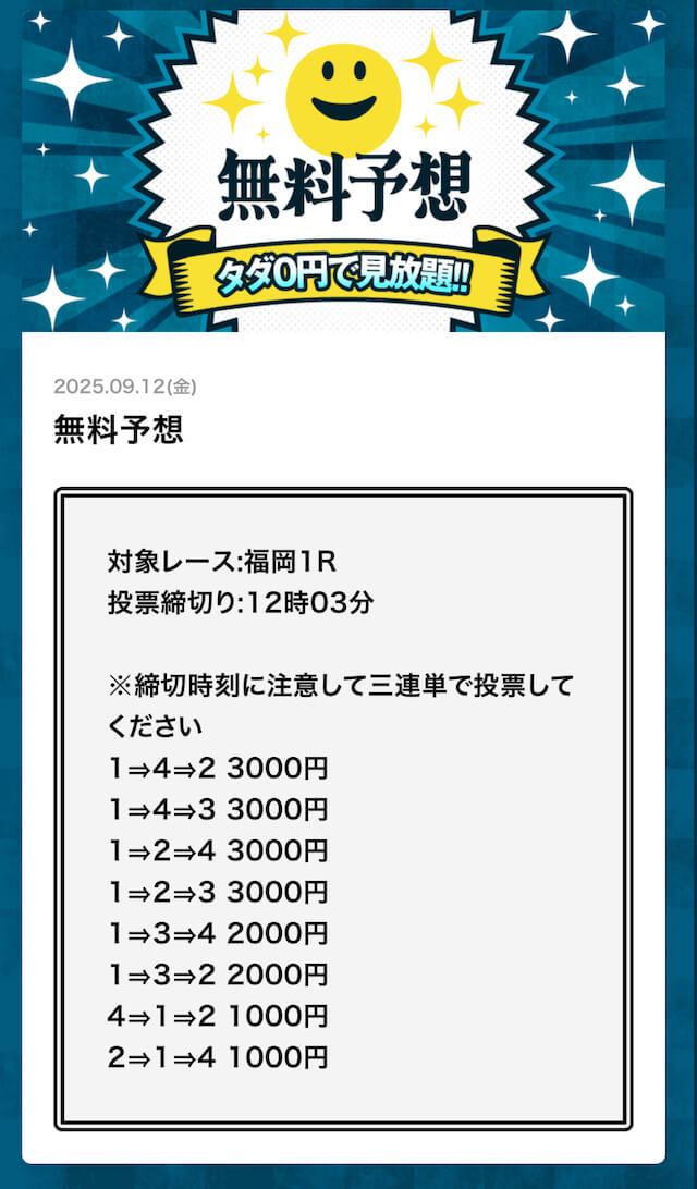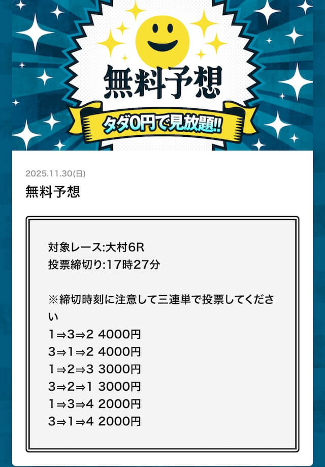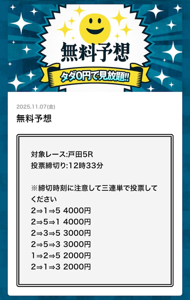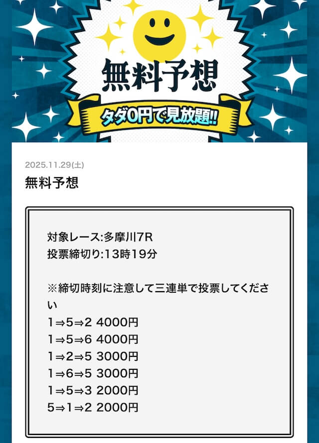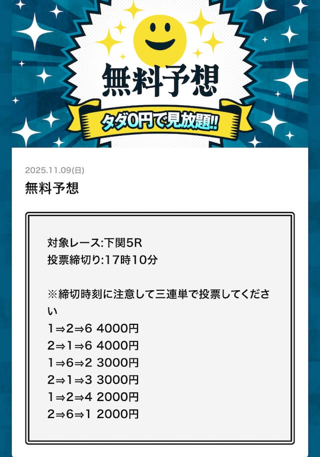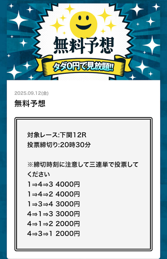 短期間で大金を得られるので、ぜひ今日の無料予想から参加してみてください。