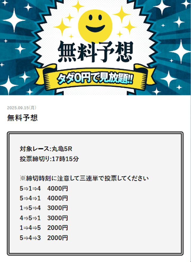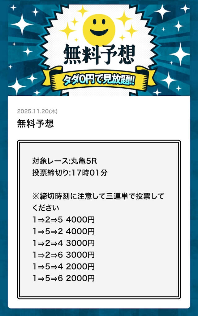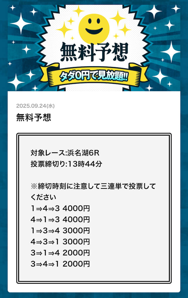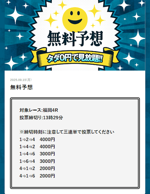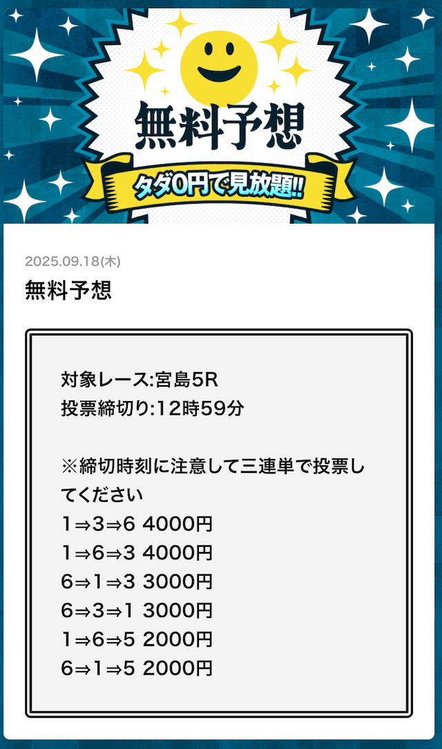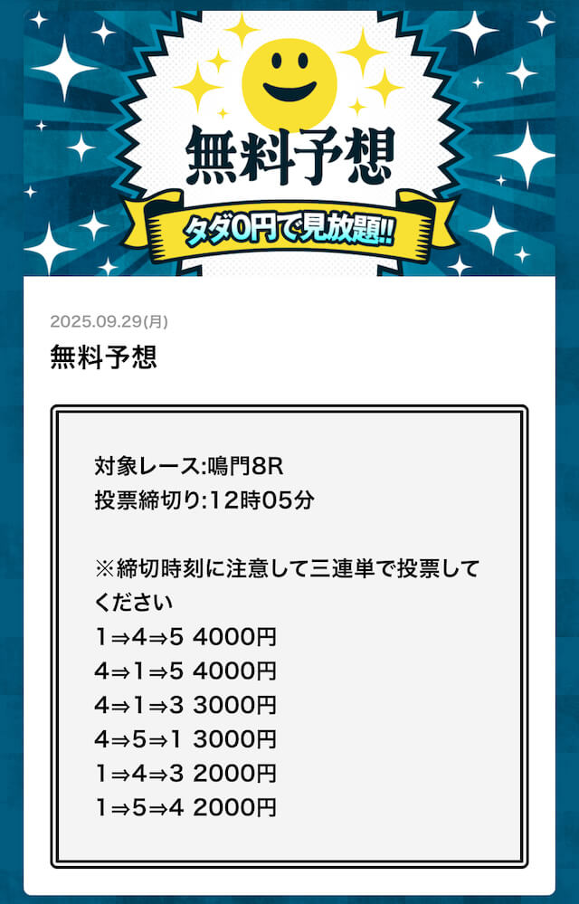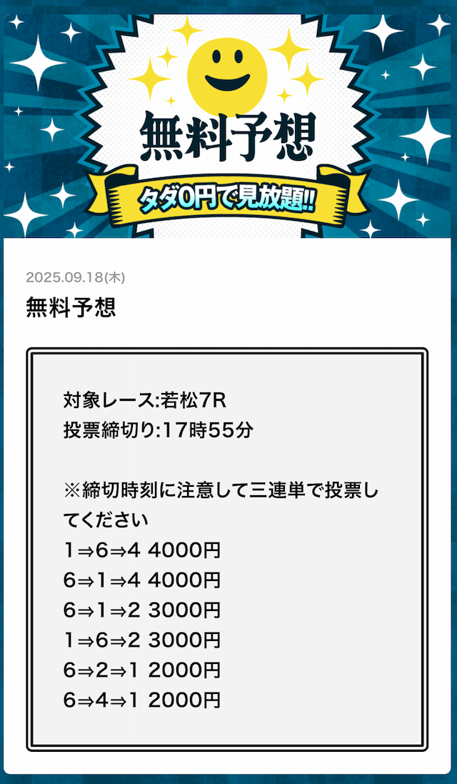 短期間で大金を得られるので、ぜひ今日の無料予想から参加してみてください。