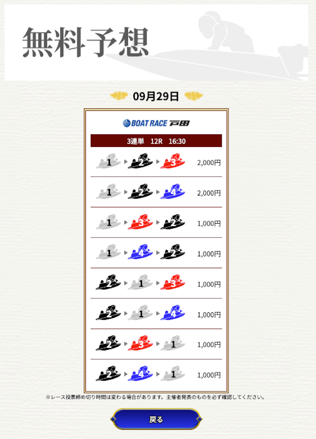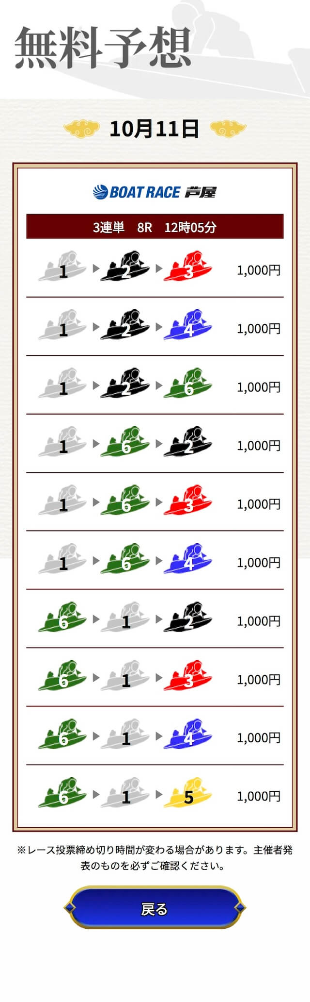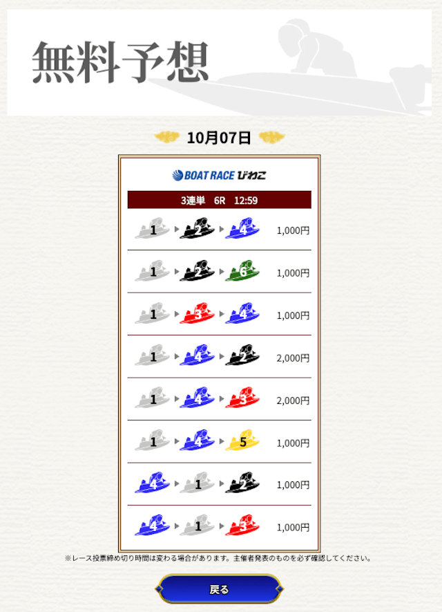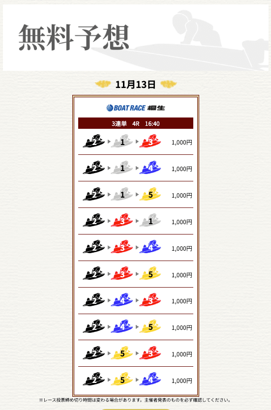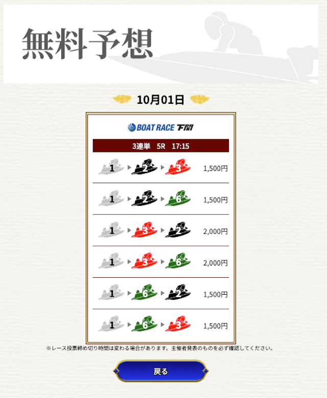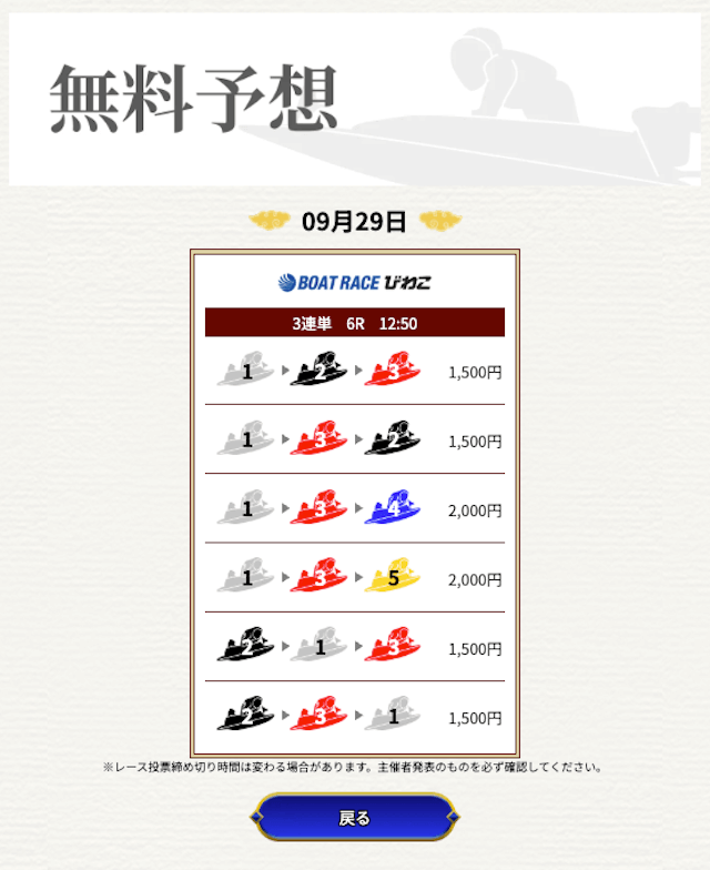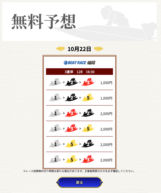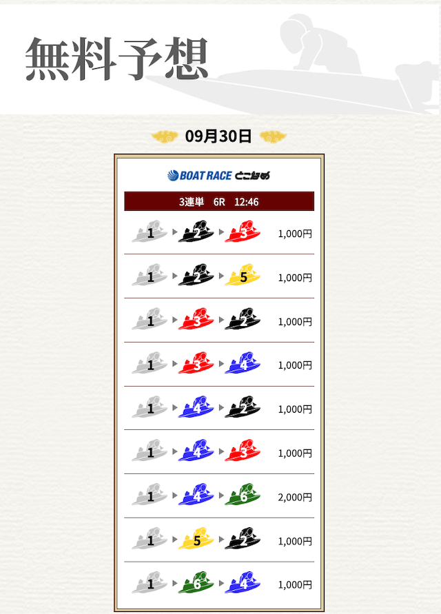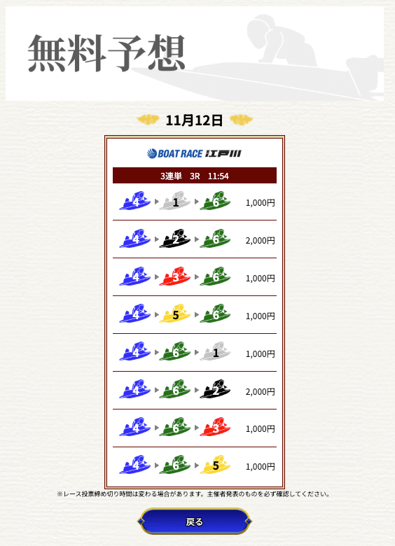 - 無料なのにここまで当たるのは本当にありがたいです。普通の予想サイトだと「無料=オマケ程度」なのに、一騎当船は無料でしっかり勝負できるのが強みだと思います。投稿日:2025/09/22