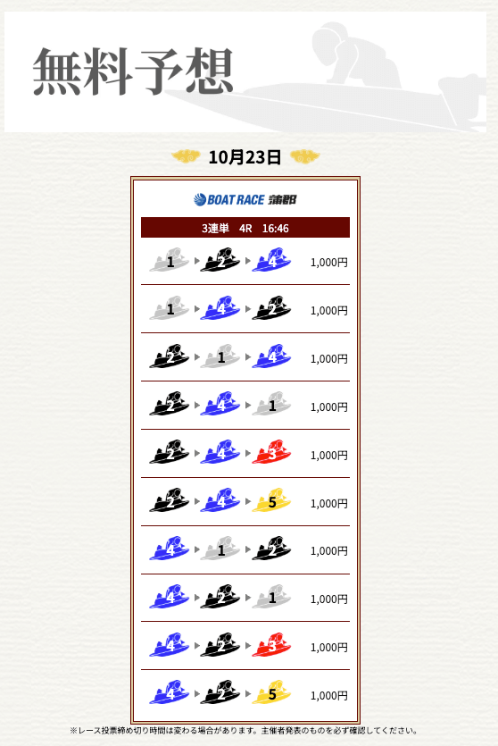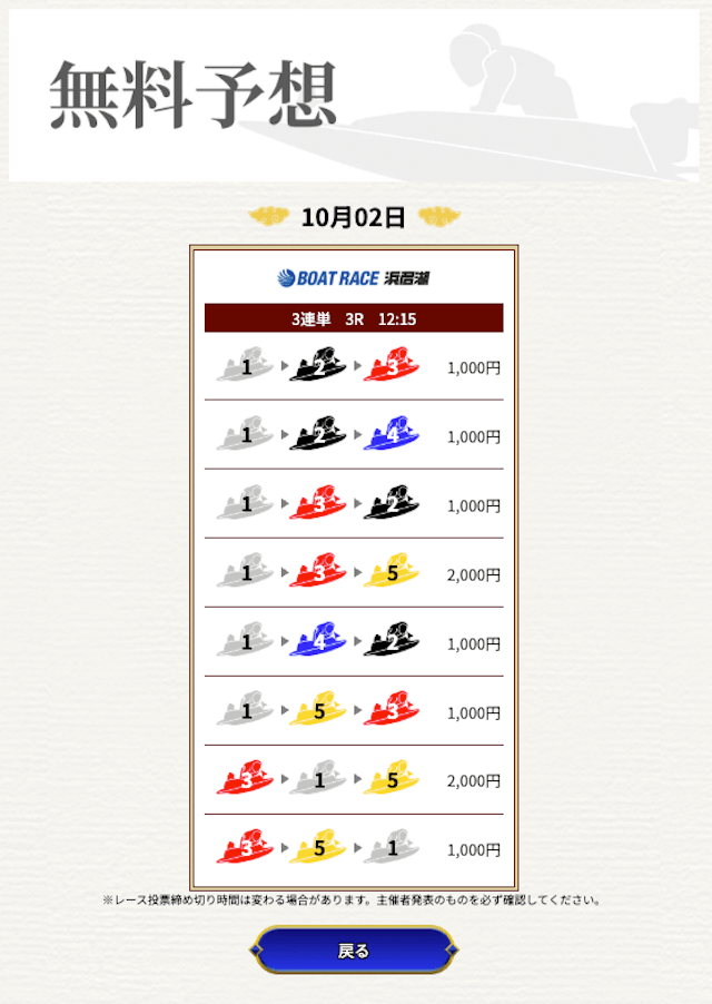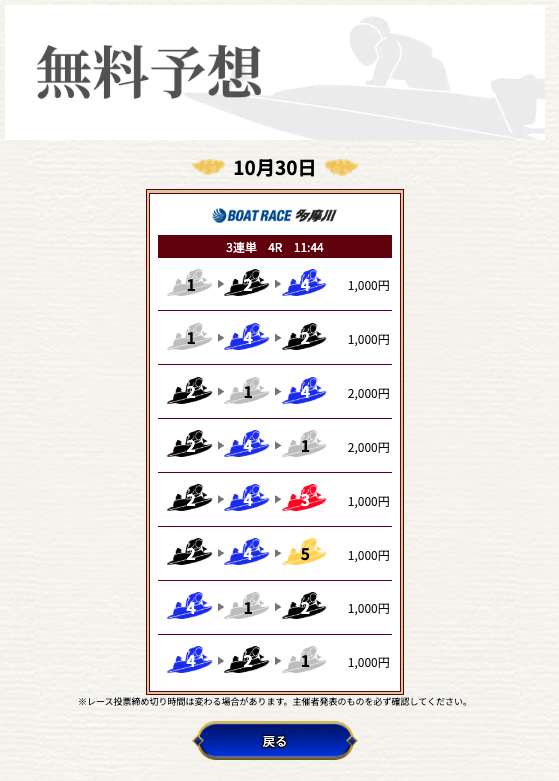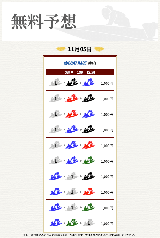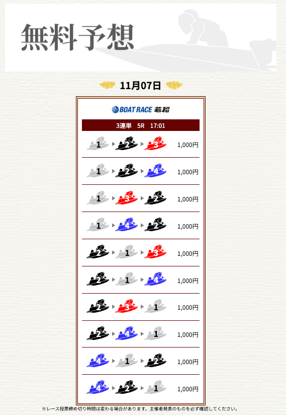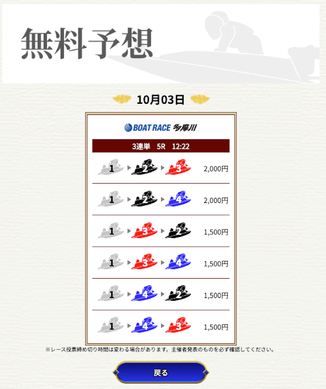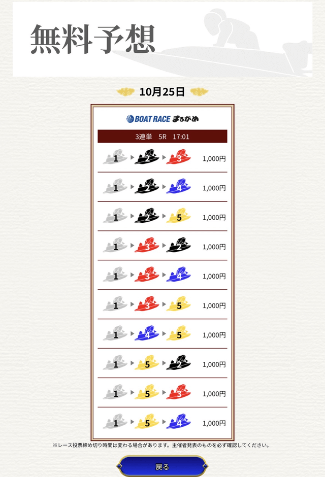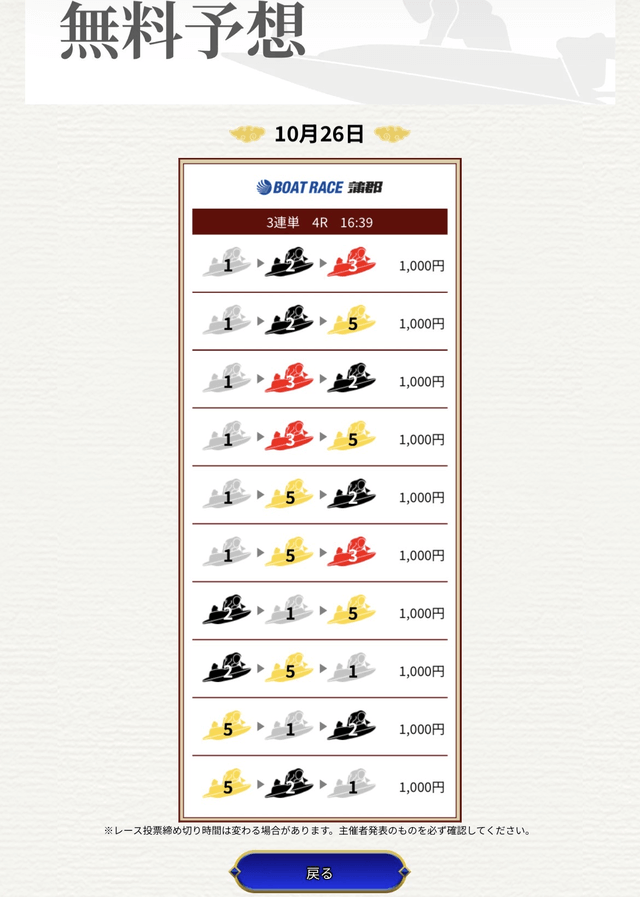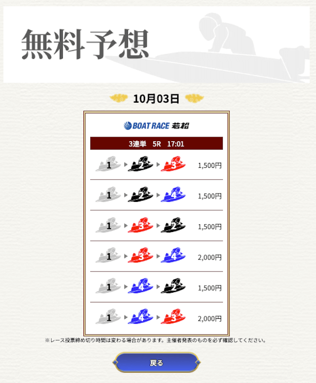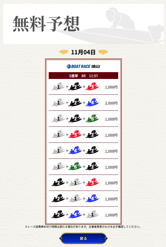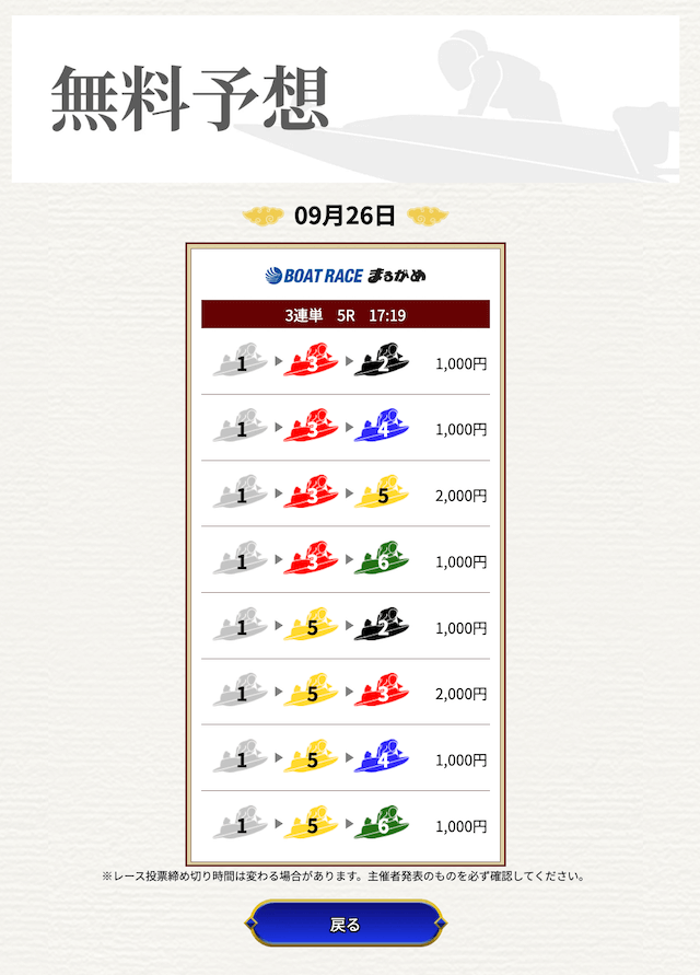 - 無料なのにここまで当たるのは本当にありがたいです。普通の予想サイトだと「無料=オマケ程度」なのに、一騎当船は無料でしっかり勝負できるのが強みだと思います。投稿日:2025/09/22
