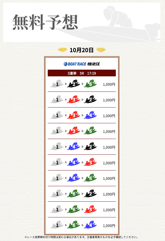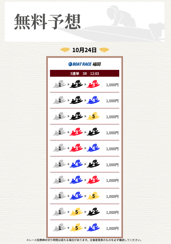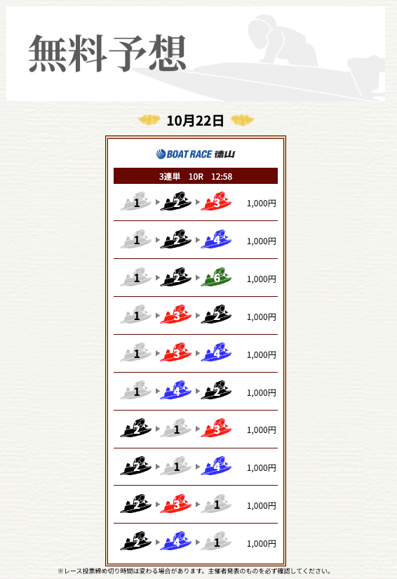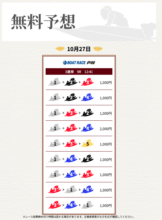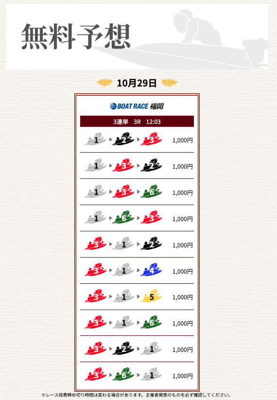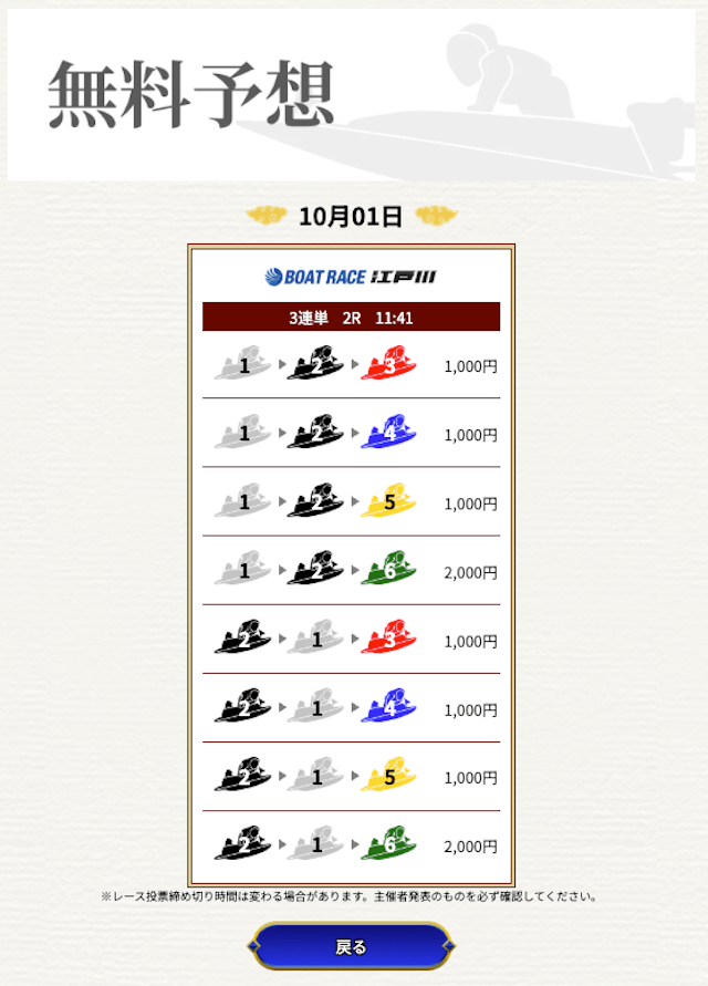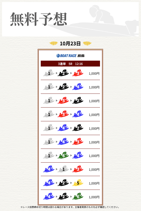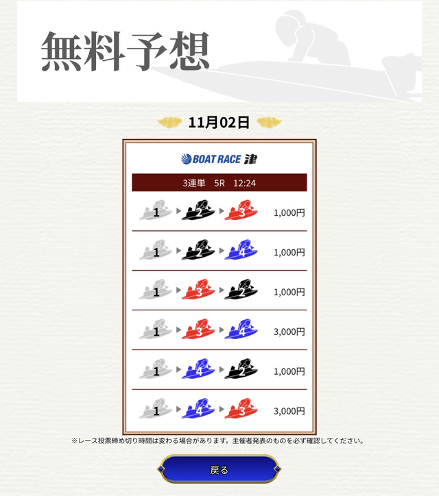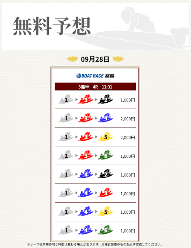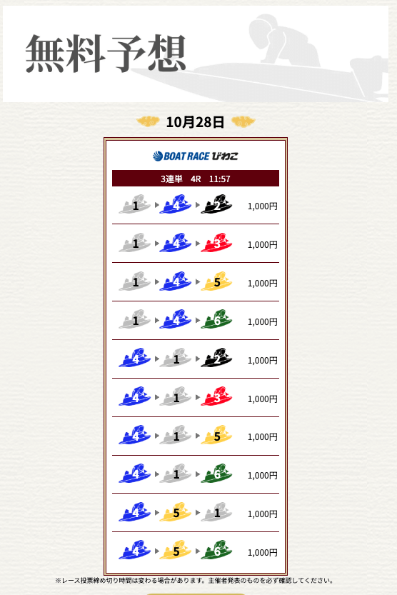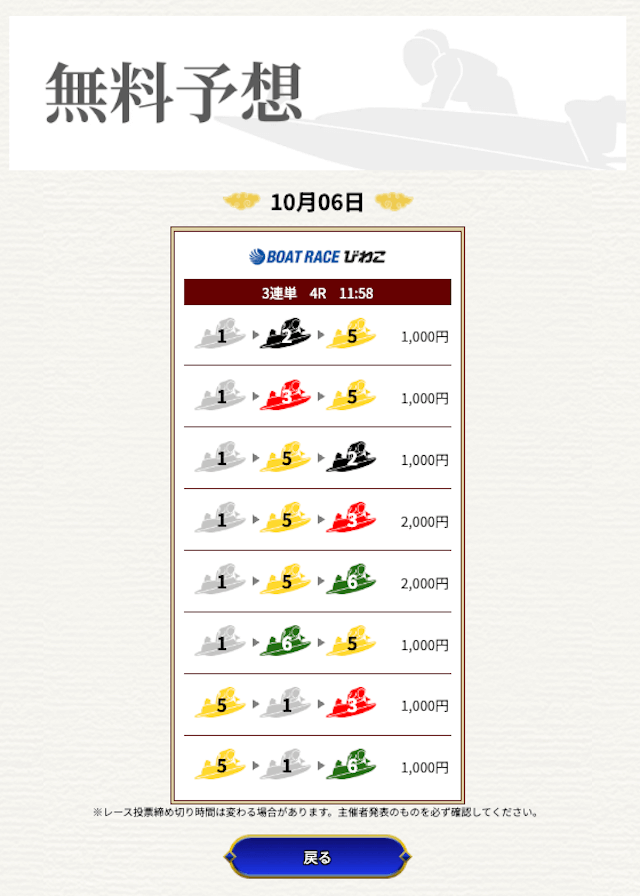 - 無料なのにここまで当たるのは本当にありがたいです。普通の予想サイトだと「無料=オマケ程度」なのに、一騎当船は無料でしっかり勝負できるのが強みだと思います。投稿日:2025/09/22
