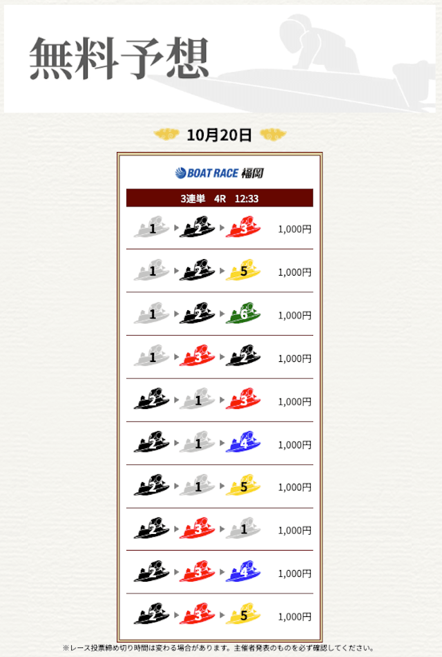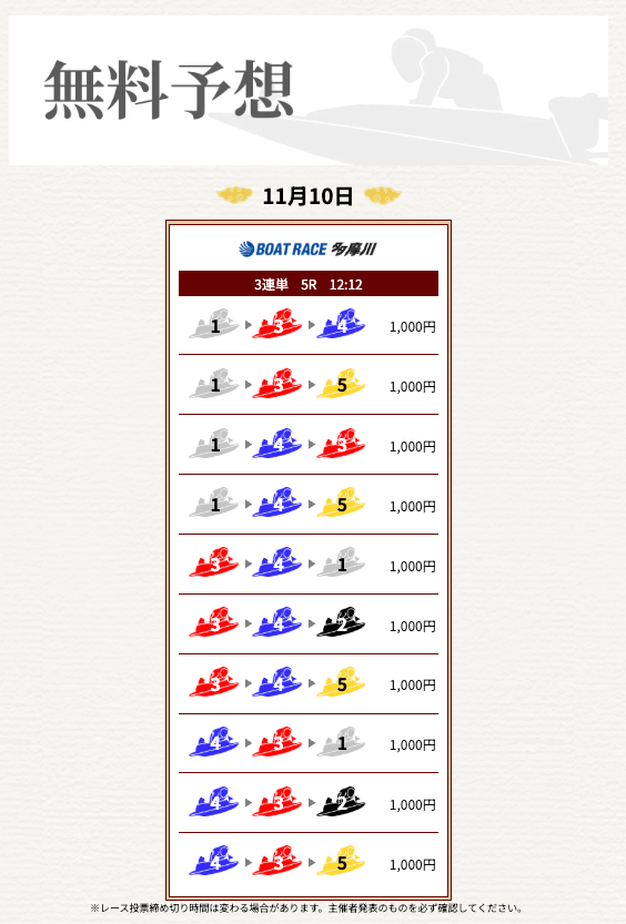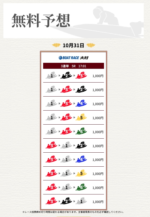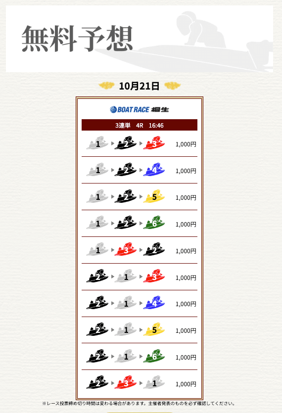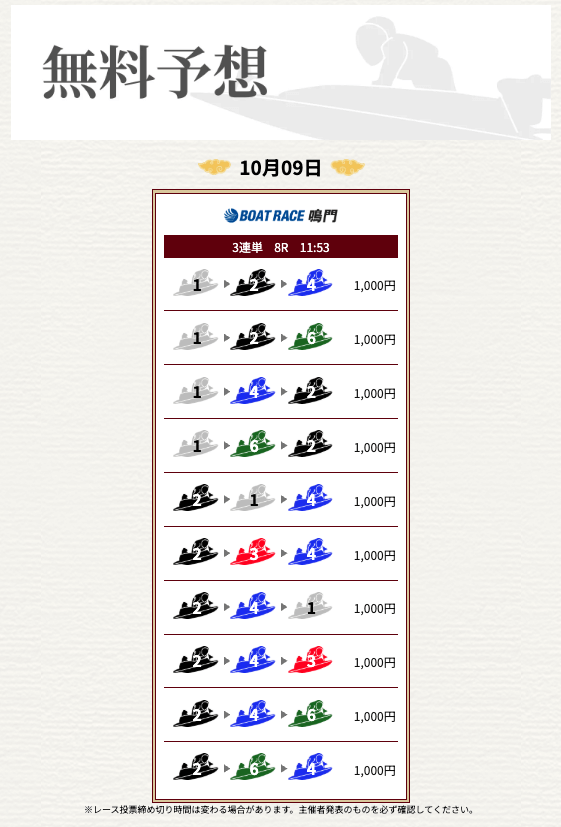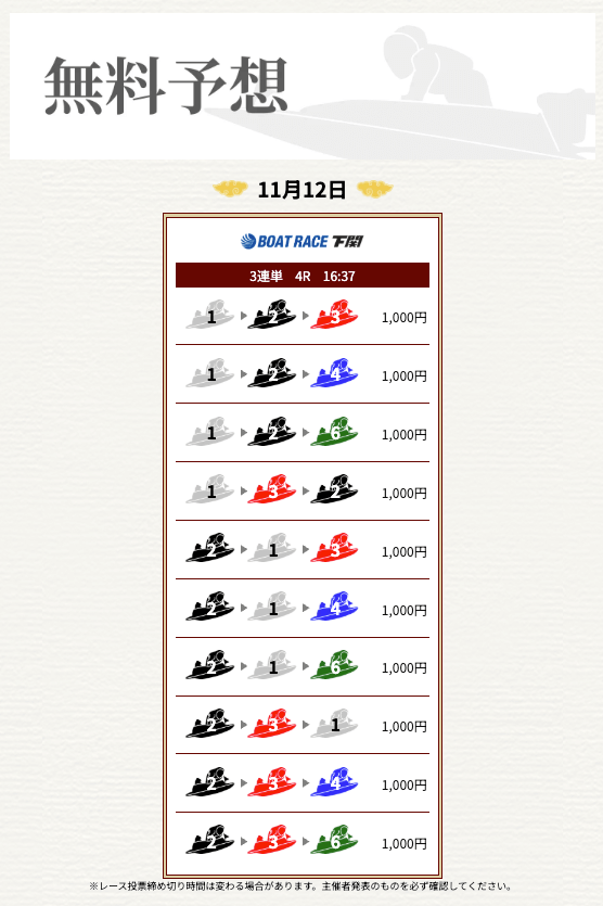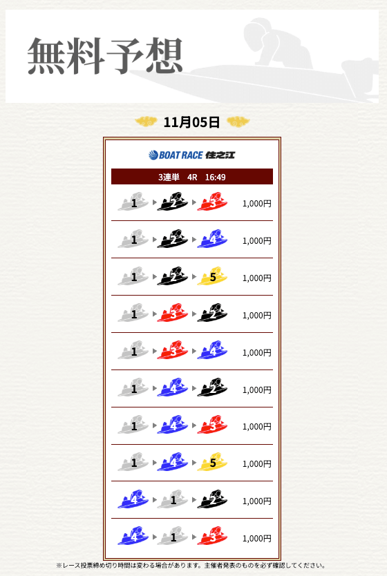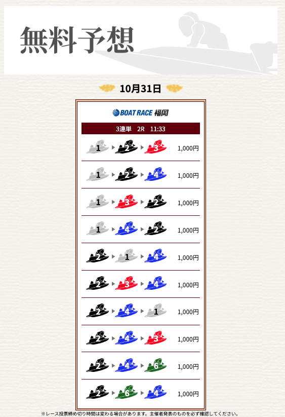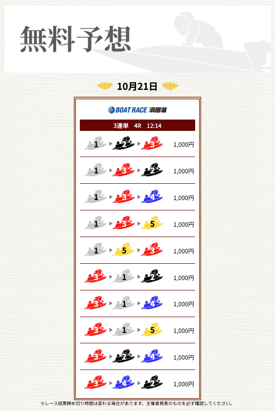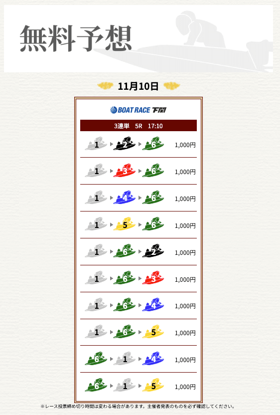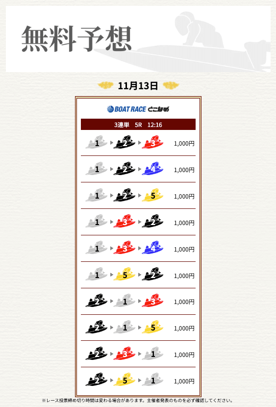 - 無料なのにここまで当たるのは本当にありがたいです。普通の予想サイトだと「無料=オマケ程度」なのに、一騎当船は無料でしっかり勝負できるのが強みだと思います。投稿日:2025/09/22
