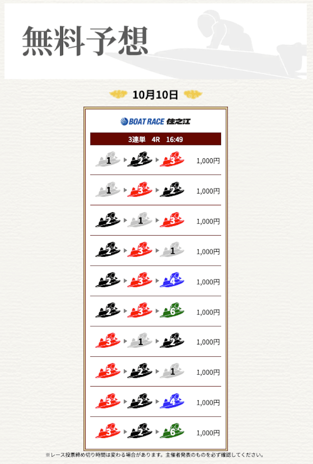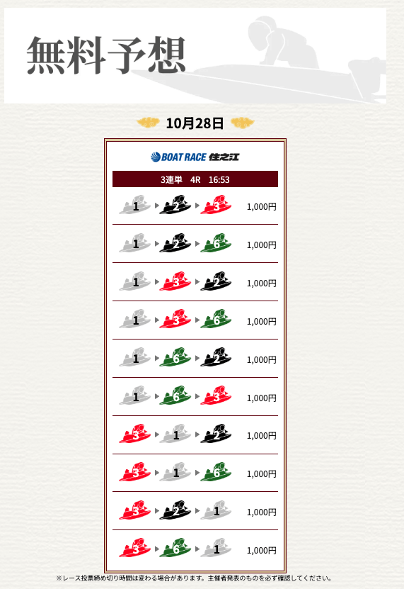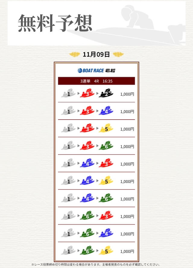 - 全プラン・全日程の結果を公開している(無料・有料予想)