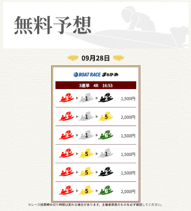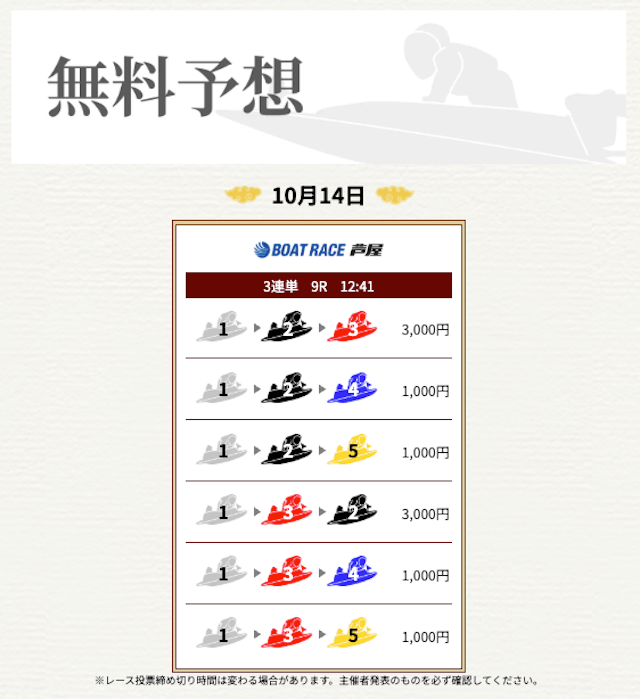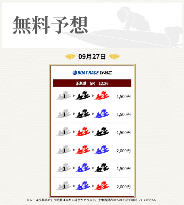 ただ、投資効率という項目が追加されています。有料予想は舟券代に加えて情報料金がかかるので、ユーザーの負担度が考慮されています。※更新頻度は毎日