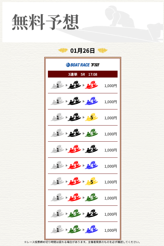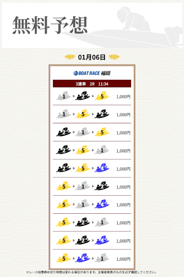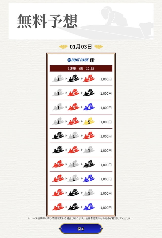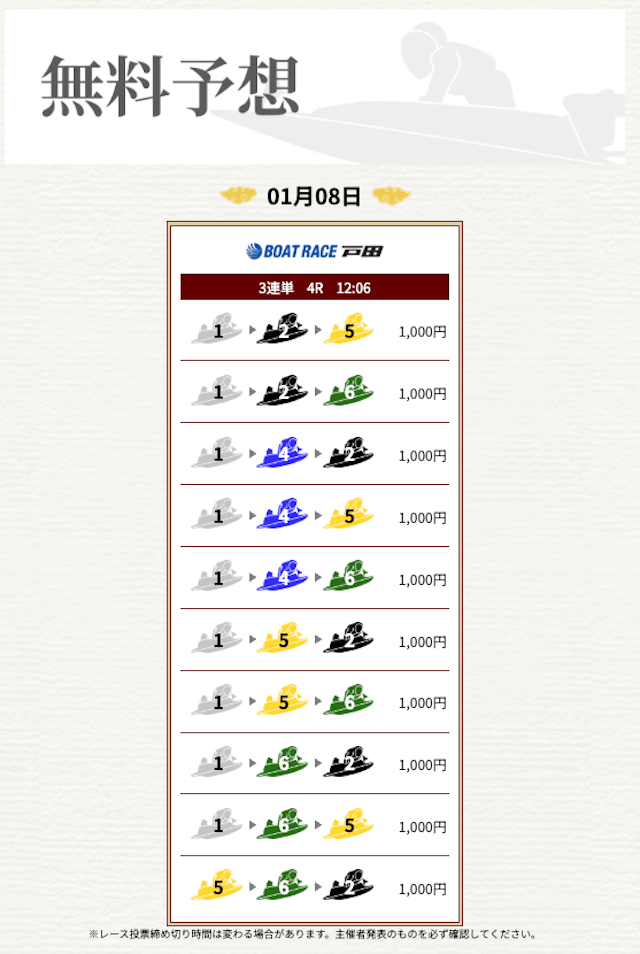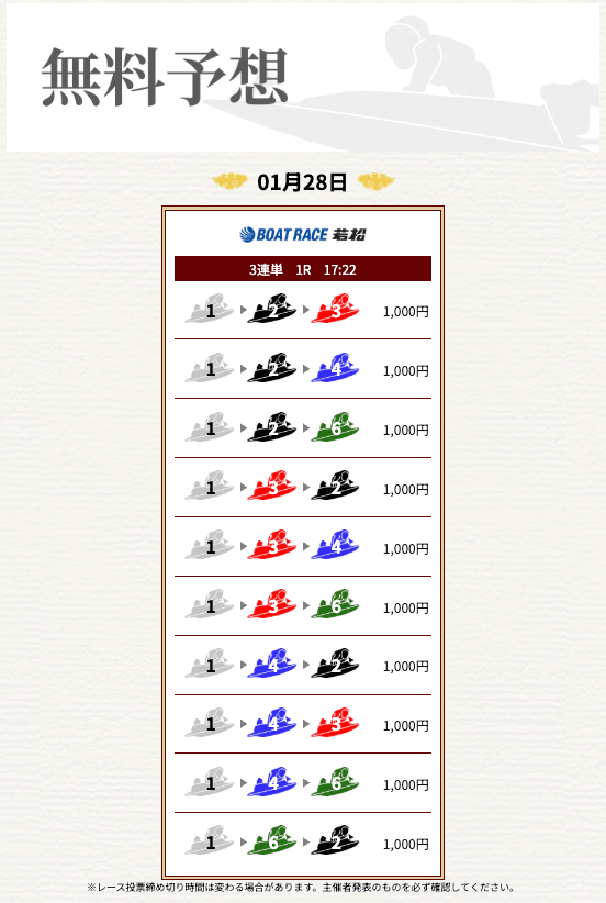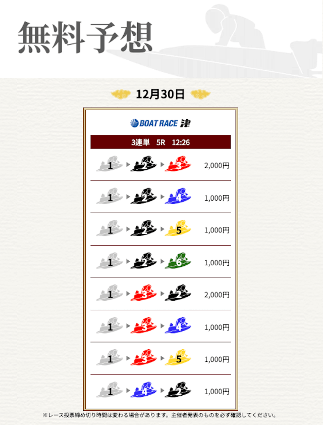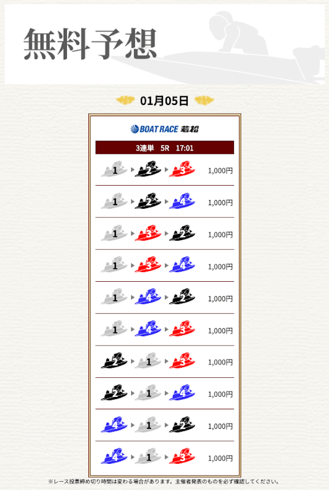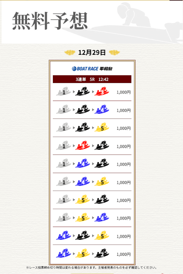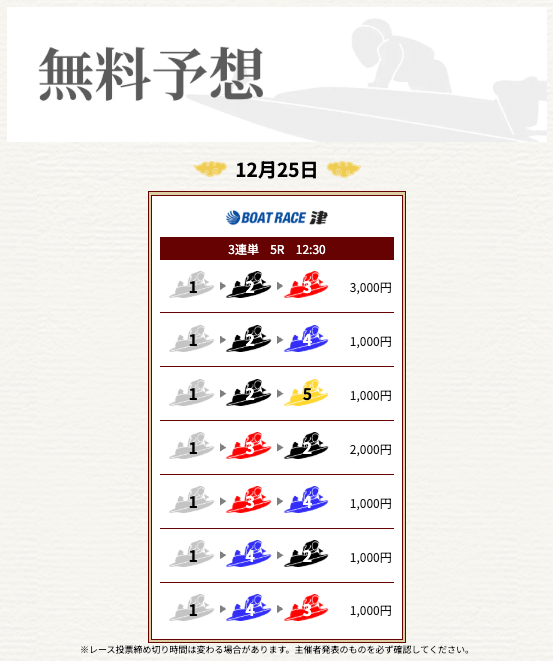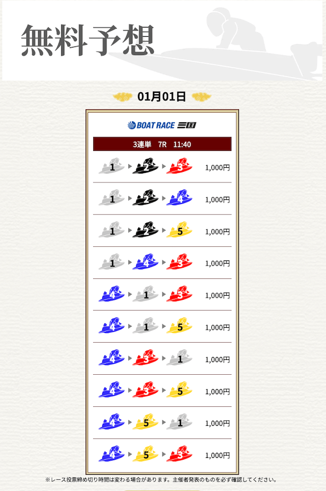 無料なのにここまで当たるのは本当にありがたいです。普通の予想サイトだと「無料=オマケ程度」なのに、一騎当船は無料でしっかり勝負できるのが強みだと思います。