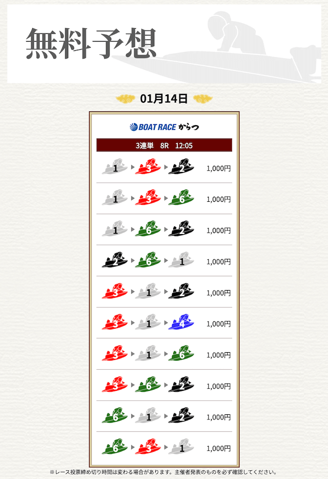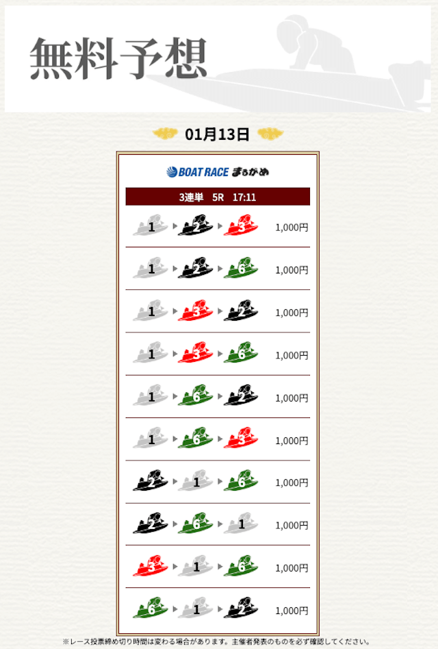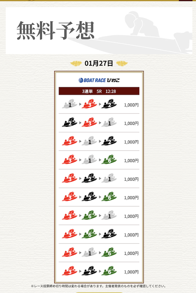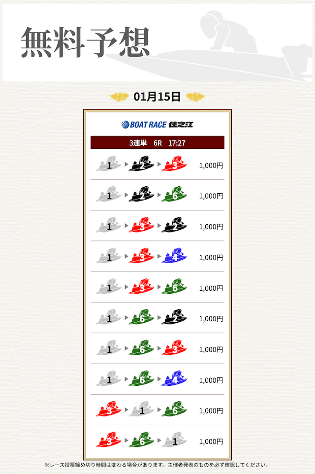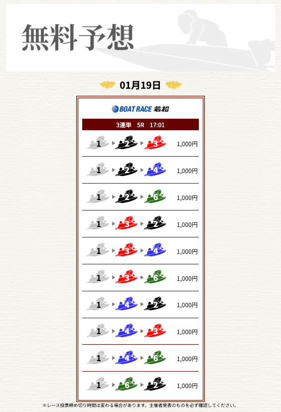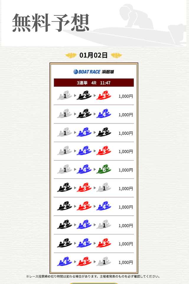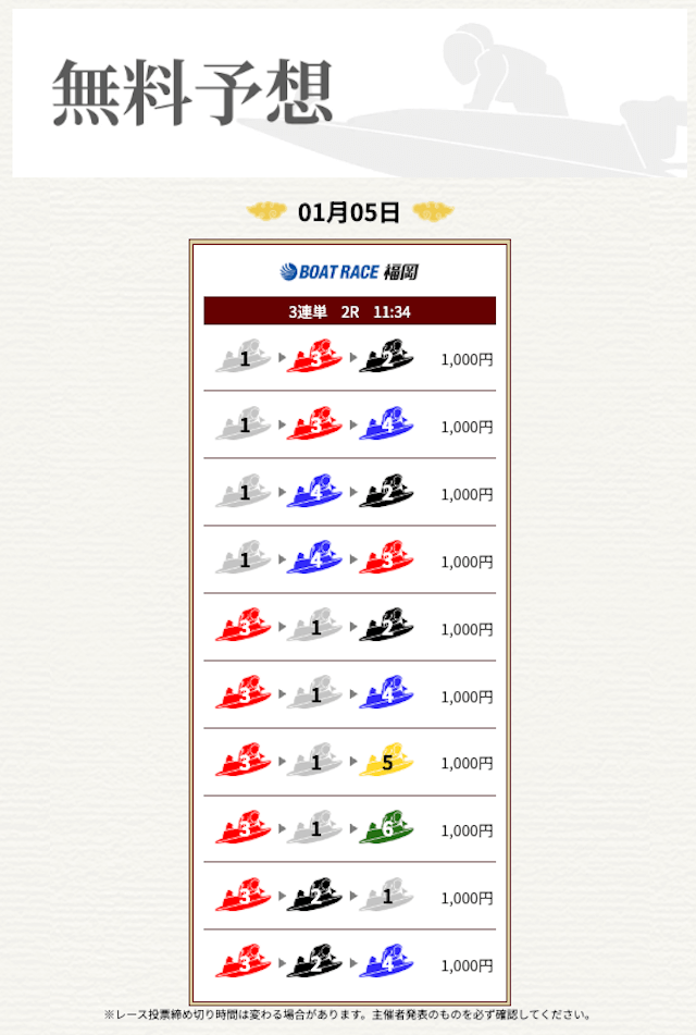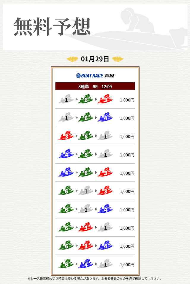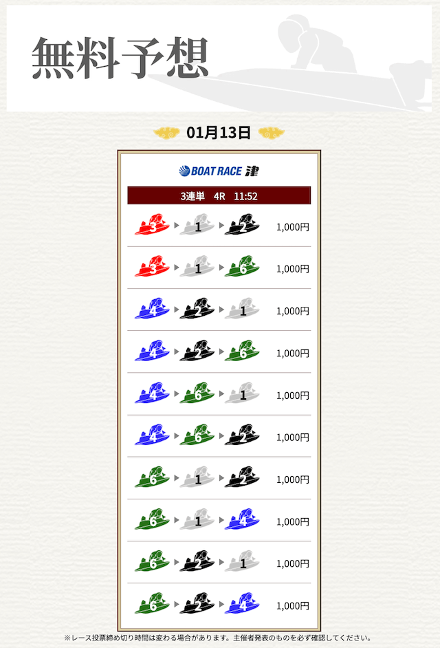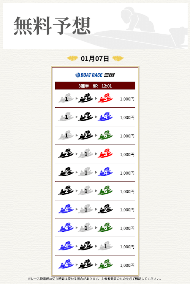 無料なのにここまで当たるのは本当にありがたいです。普通の予想サイトだと「無料=オマケ程度」なのに、一騎当船は無料でしっかり勝負できるのが強みだと思います。