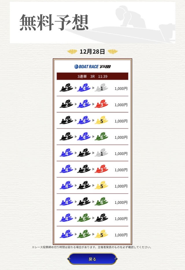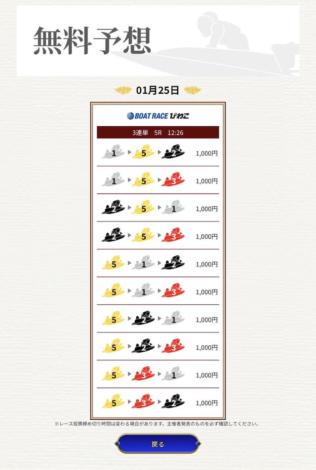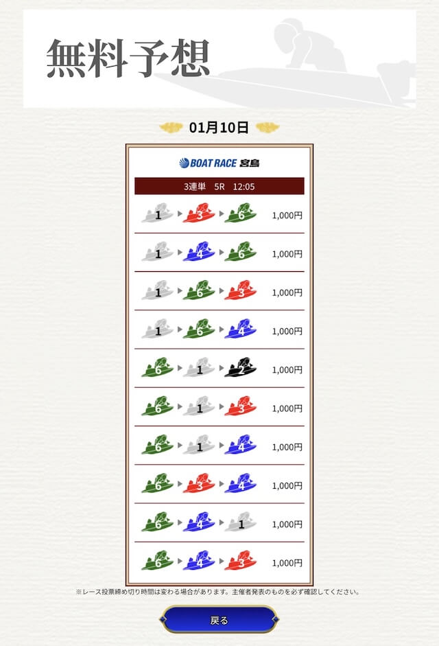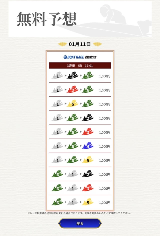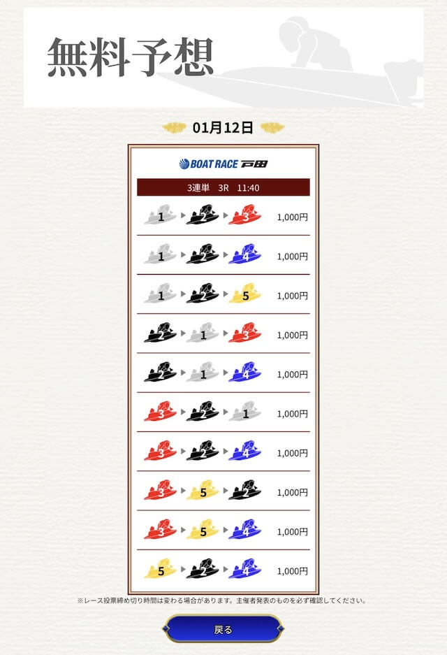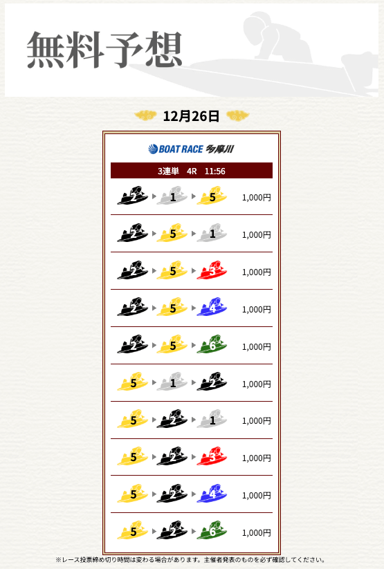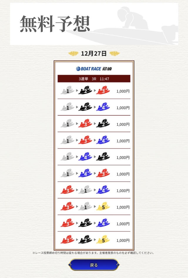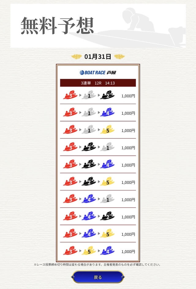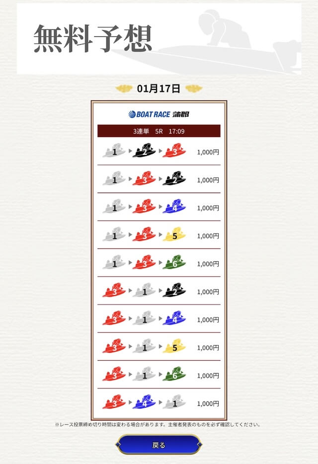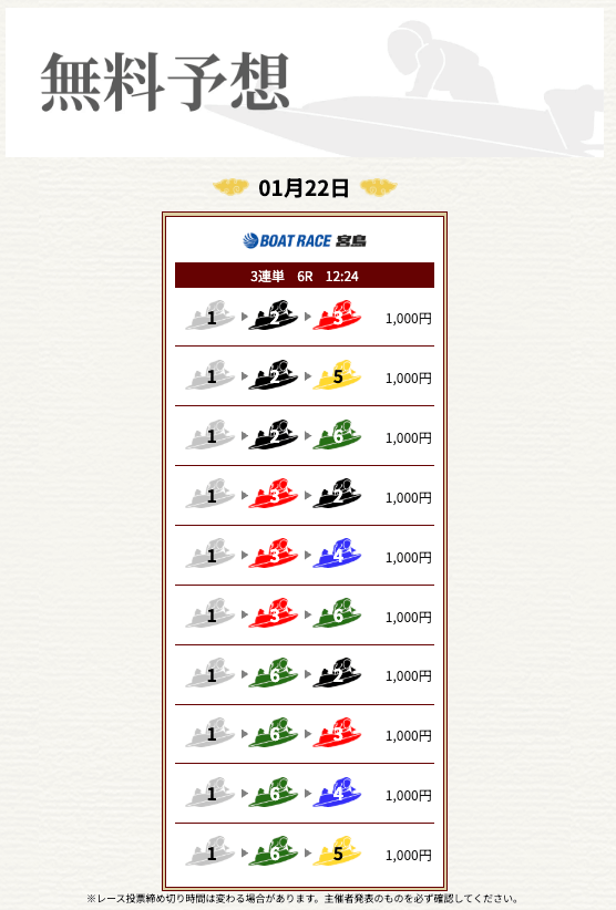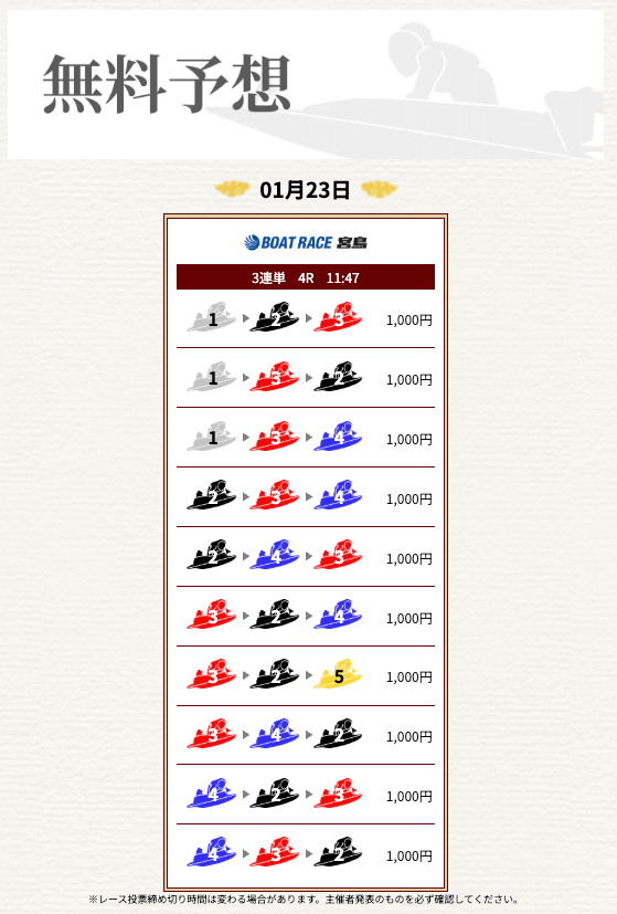 他の予想サイトではボコボコにやられて疲れてたけど、思い切って一騎当船に切り替えたら、無料予想で即的中。