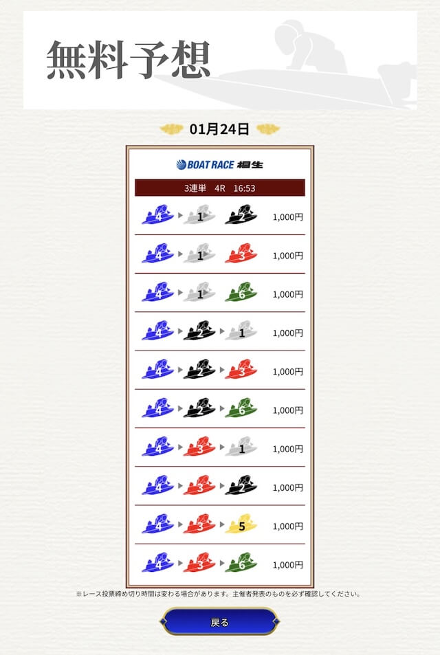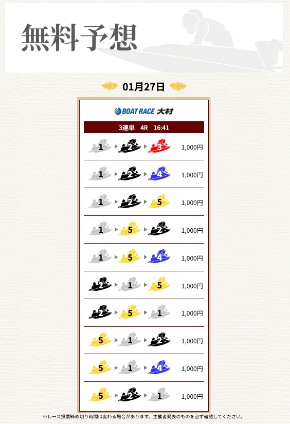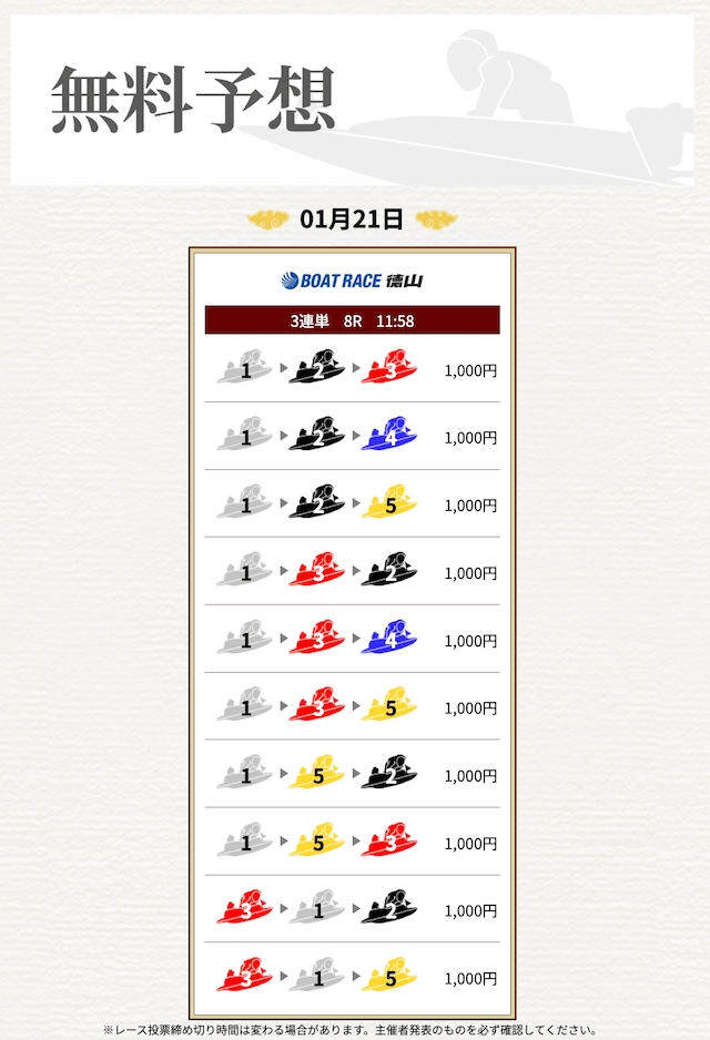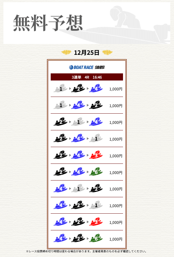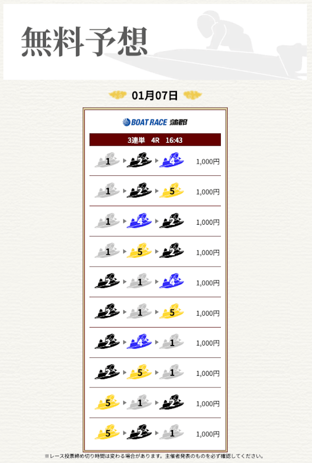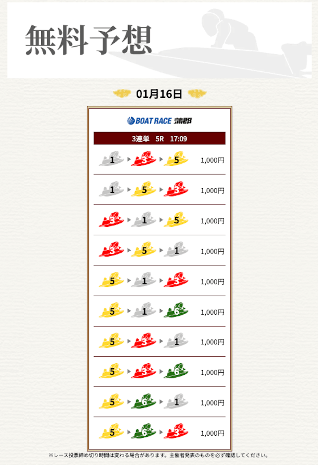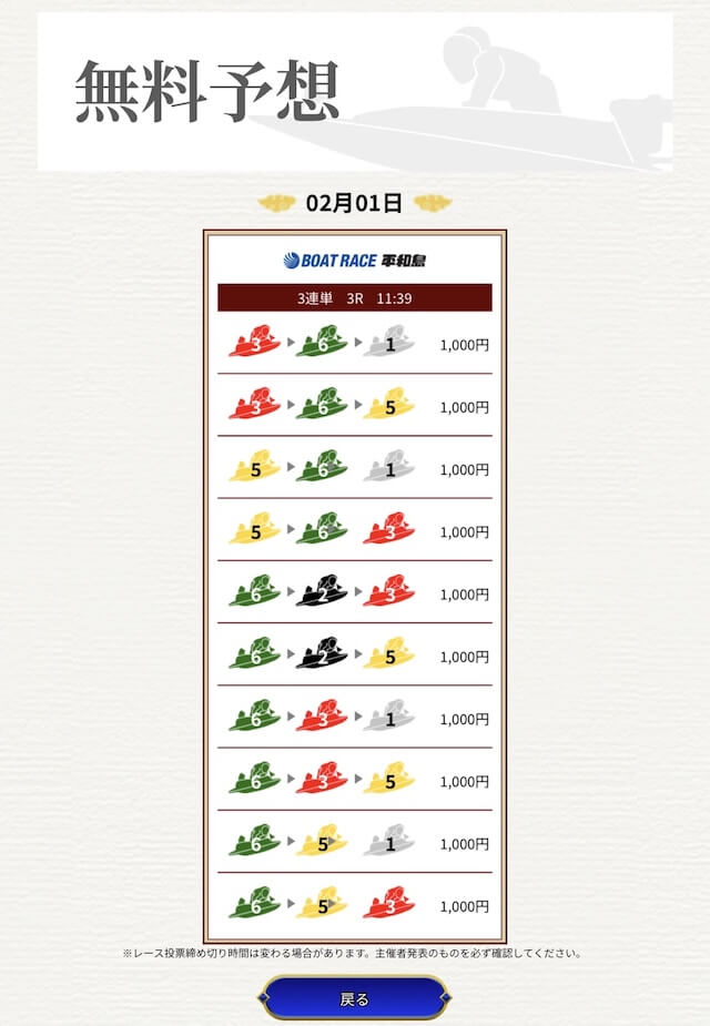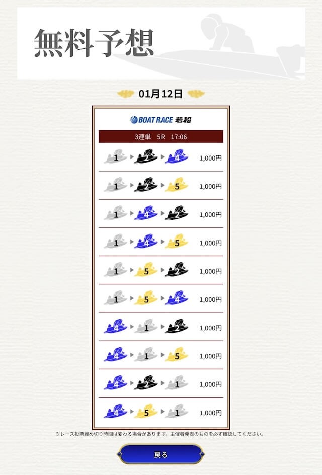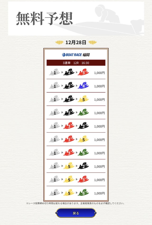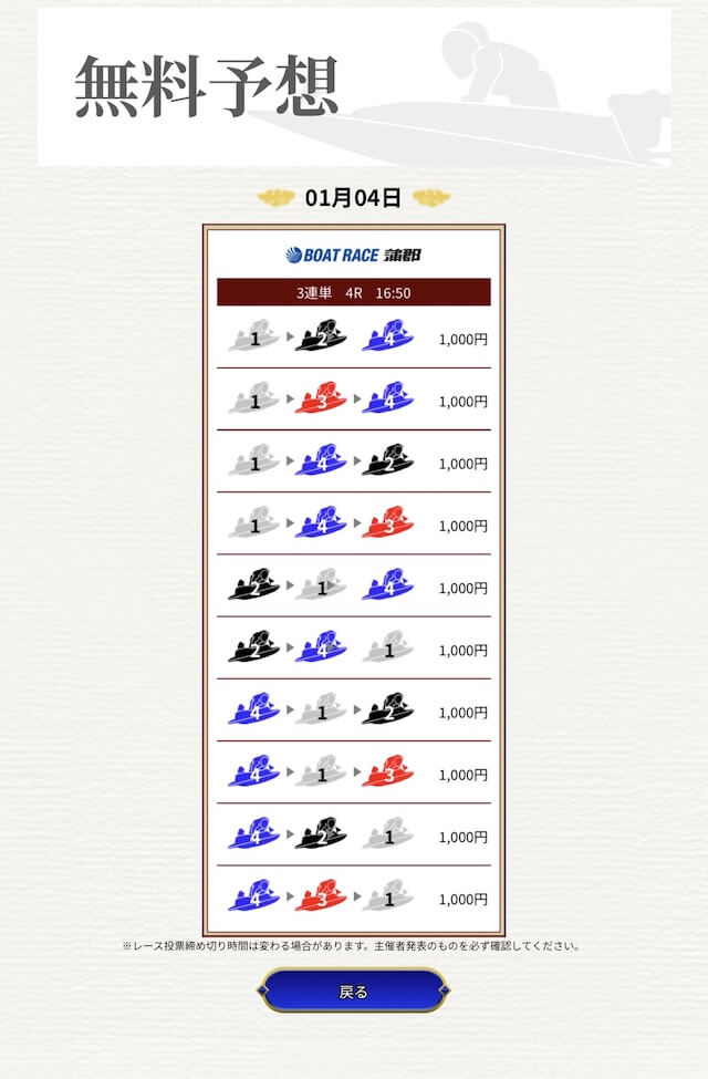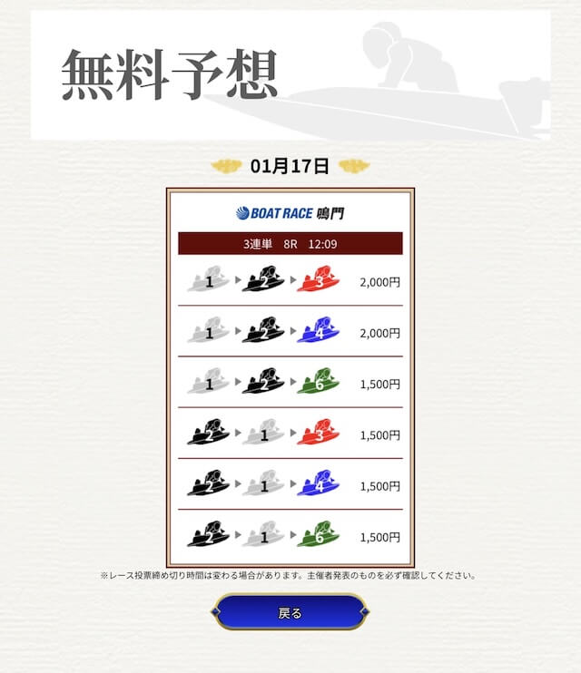 他の予想サイトではボコボコにやられて疲れてたけど、思い切って一騎当船に切り替えたら、無料予想で即的中。