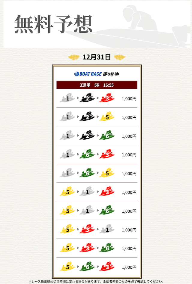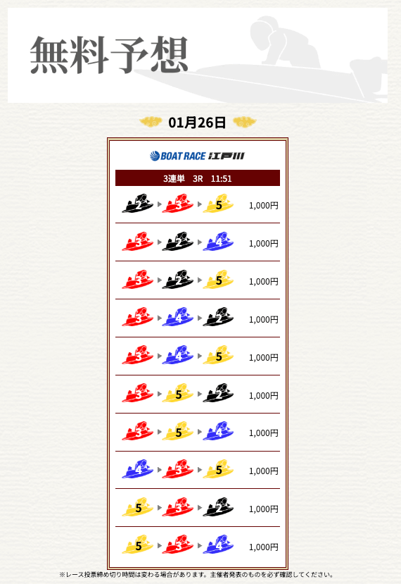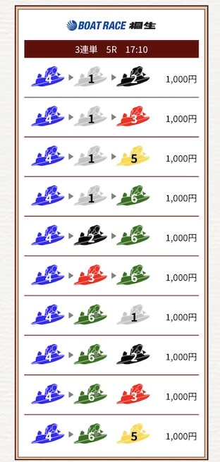 - 券種:3連単(3〜10点)