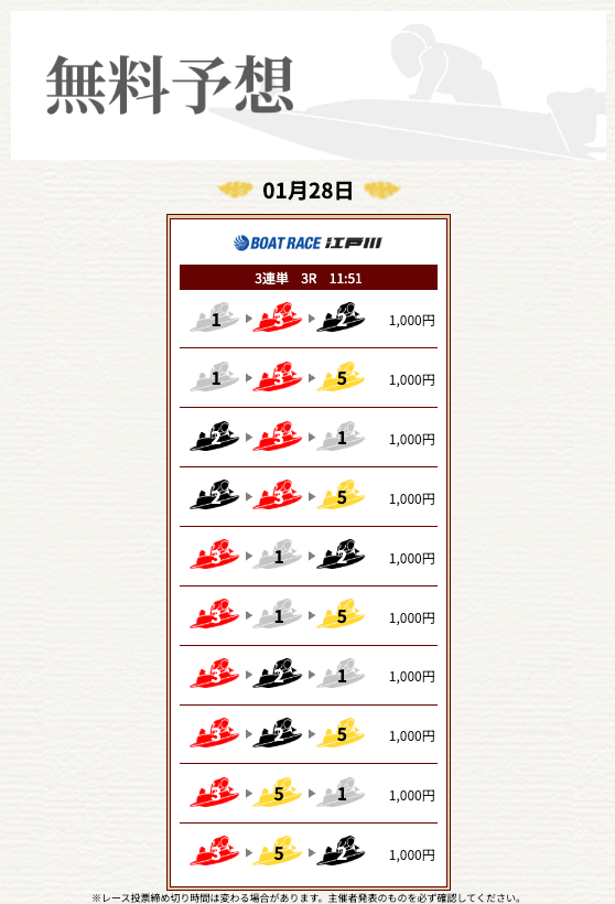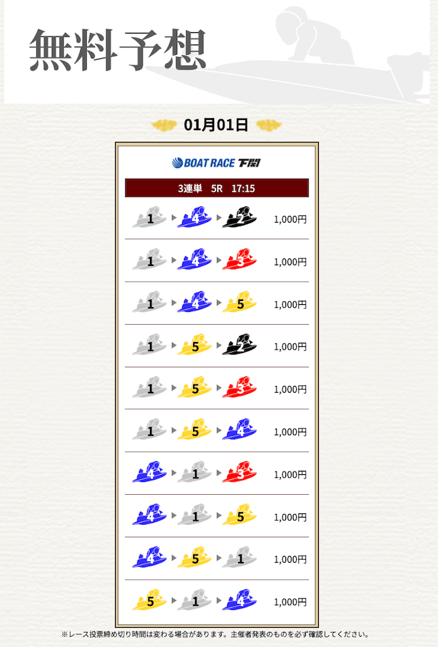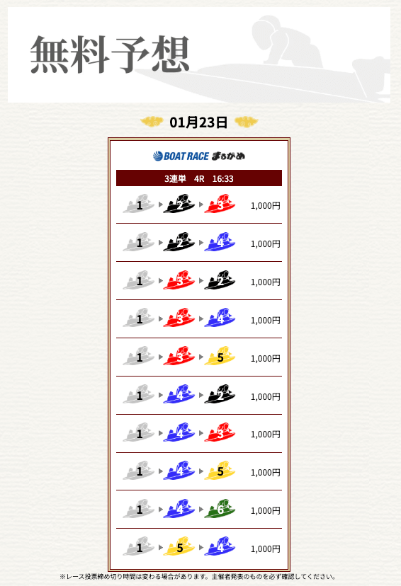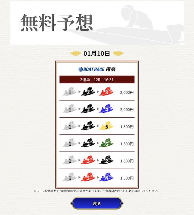 では、一騎当船の無料予想が稼げることを願って、いざ勝負!