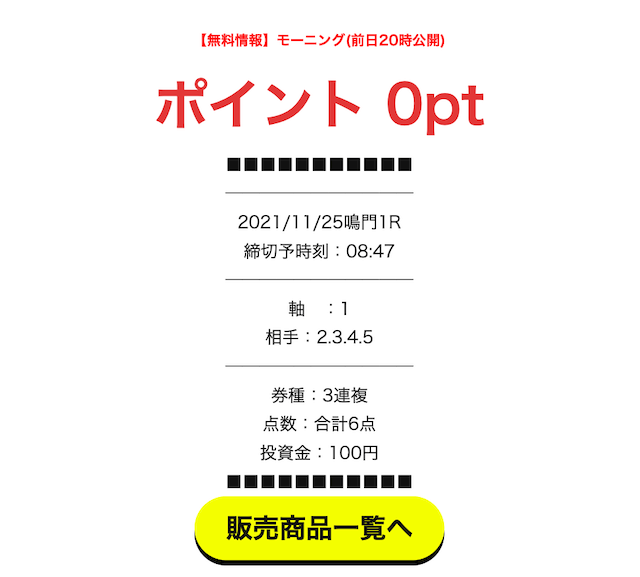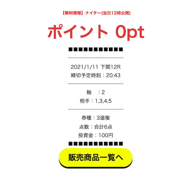 | ルールその① | 公開された無料予想を指示通りに購入します。 | ||