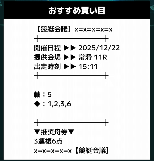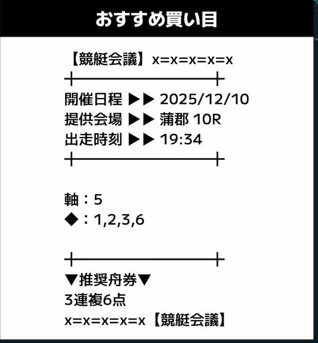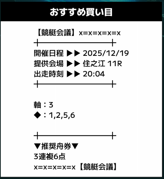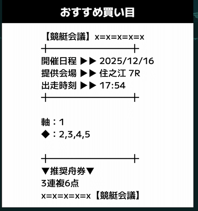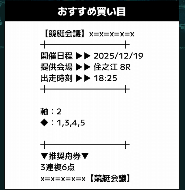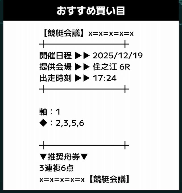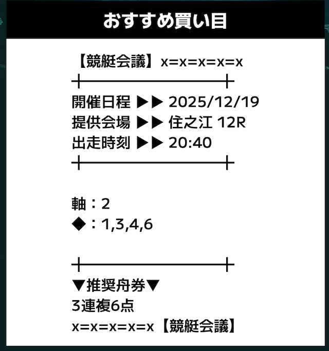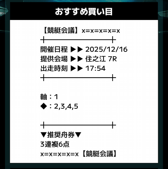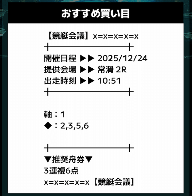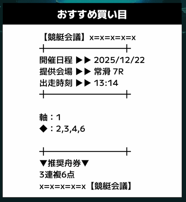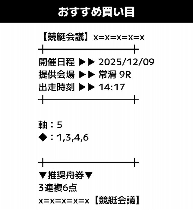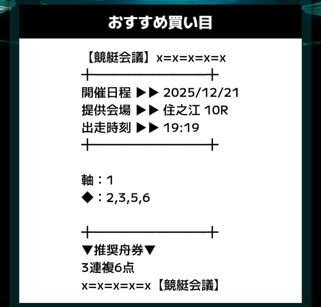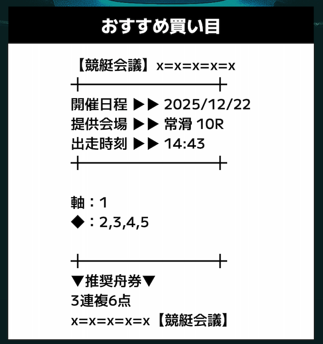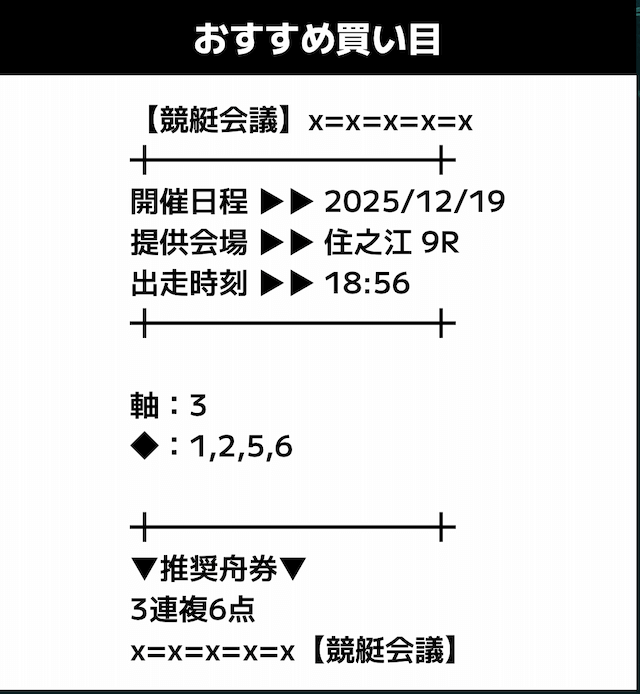 - 推奨舟券代:記載無し