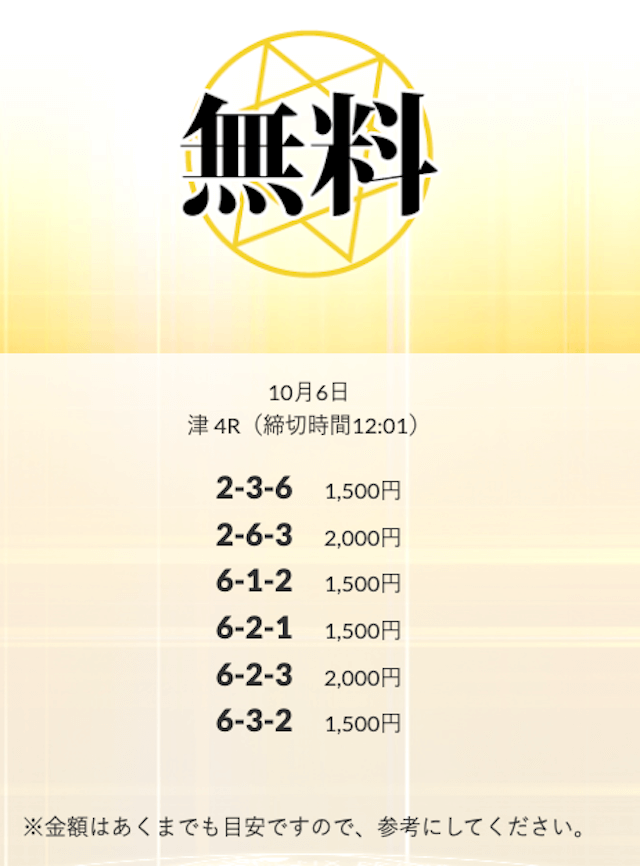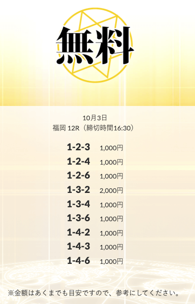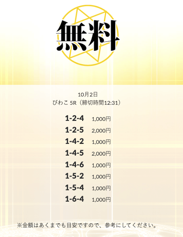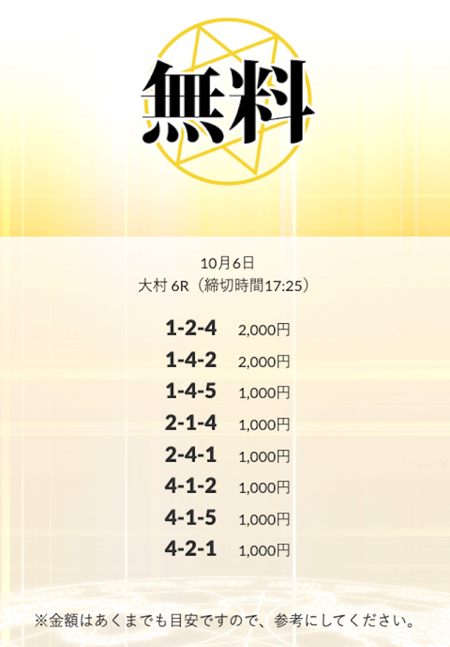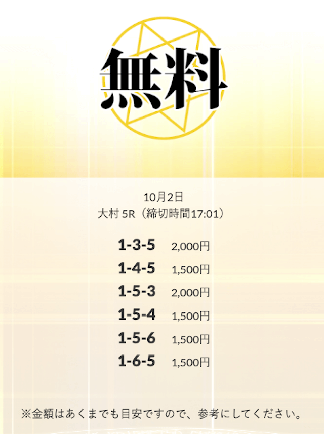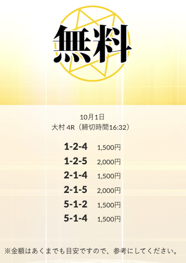 - 無料予想の精度がここまで高いなら、有料予想も期待できると自然に思えた。投稿日:2025/10/02