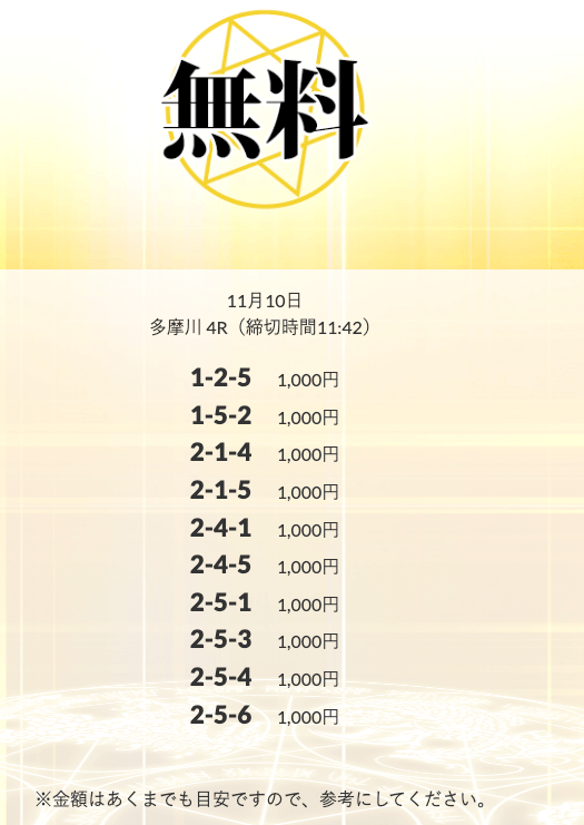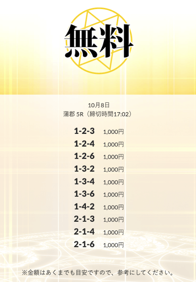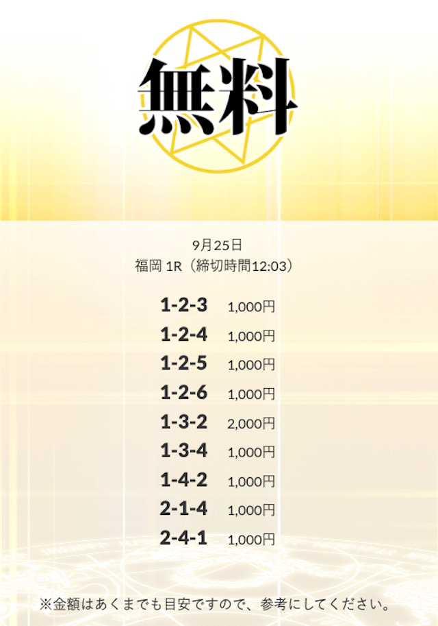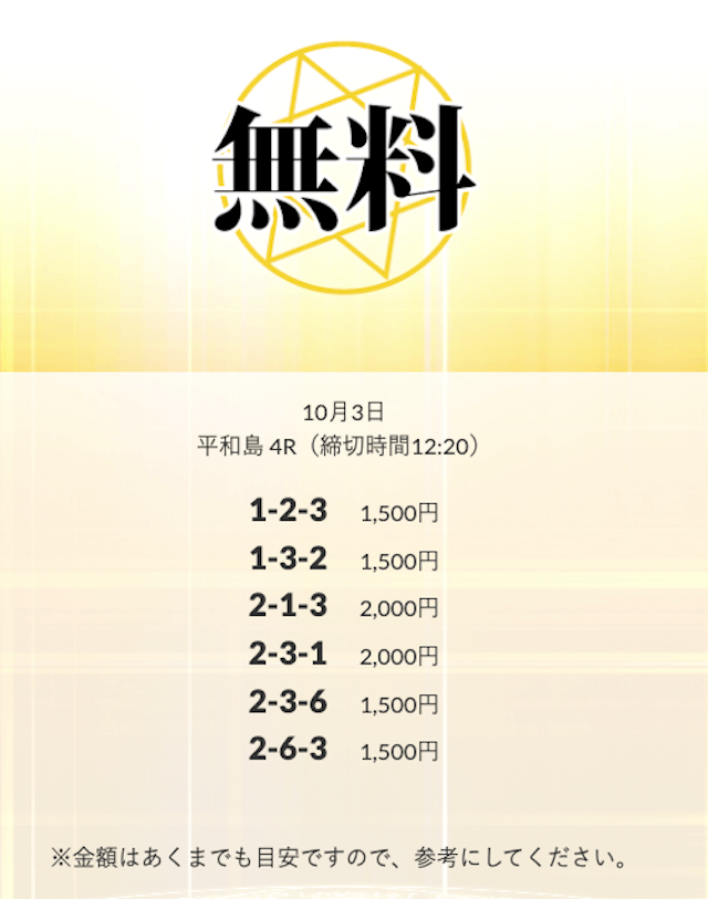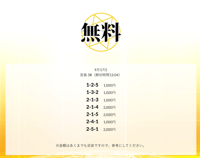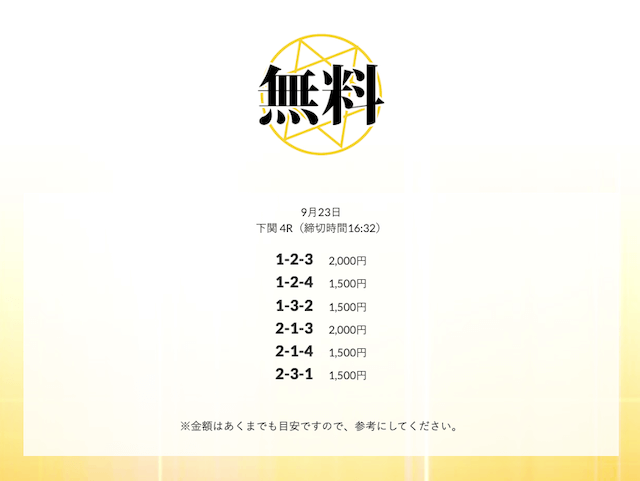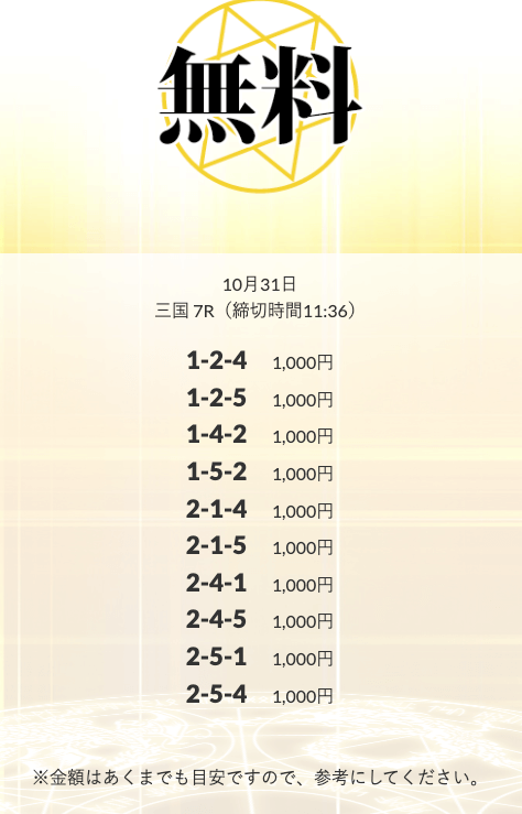 - 無料予想の精度がここまで高いなら、有料予想も期待できると自然に思えた。投稿日:2025/10/02
