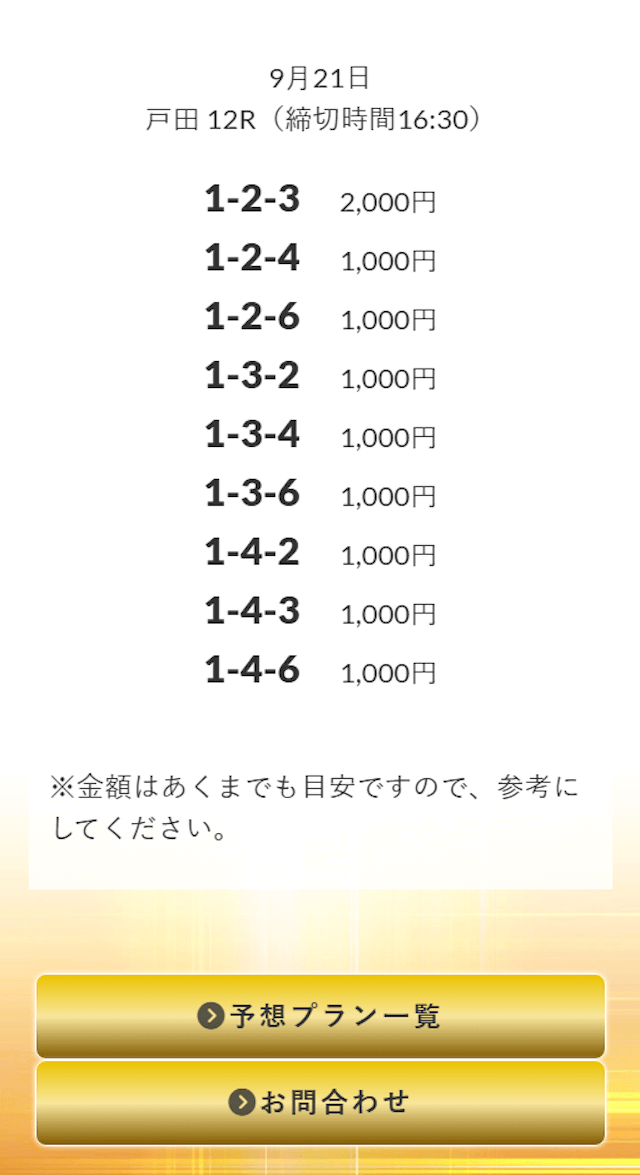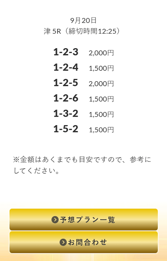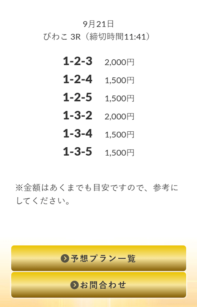 プランが上がっても的中率が上がる訳ではありません。どのプランも的中率50〜70%ほど。そのため無理して高額プランに参加するのはリスクが大きいです。自身の軍資金に見合ったプランを選んでいくと良いでしょう。