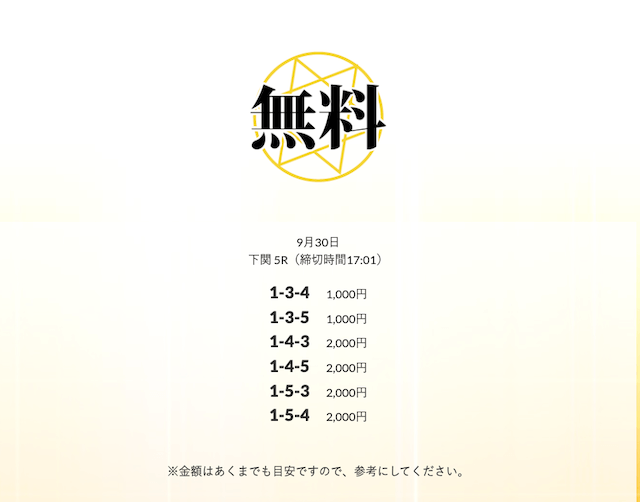 無料予想の精度がここまで高いなら、有料予想も期待できると自然に思えた。投稿日:2025/10/02