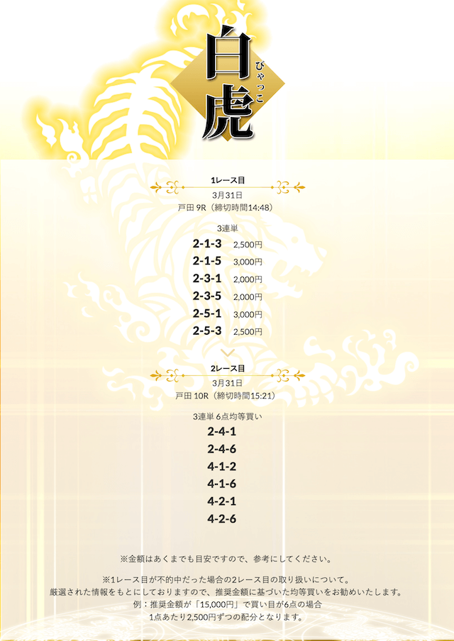 2025/3/31 白虎 情報料金+舟券代 60,000円+15,000円 |