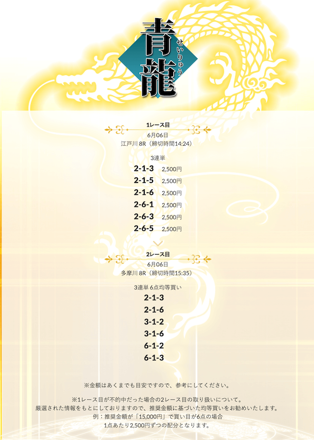 2025/6/6 青龍 情報料金+舟券代 45,000円+15,000円 |