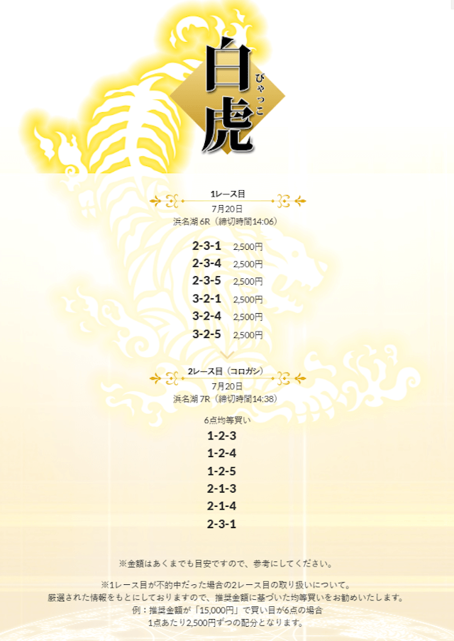 2025/7/20 白虎 情報料金+舟券代 60,000円+30,000円 |