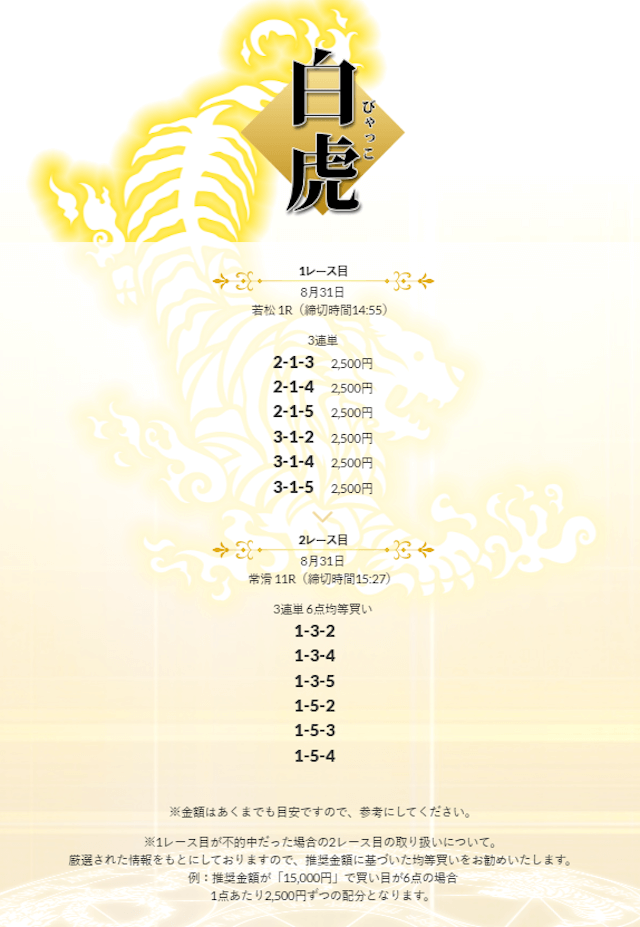 2025/8/31 白虎 情報料金+舟券代 60,000円+15,000円 |