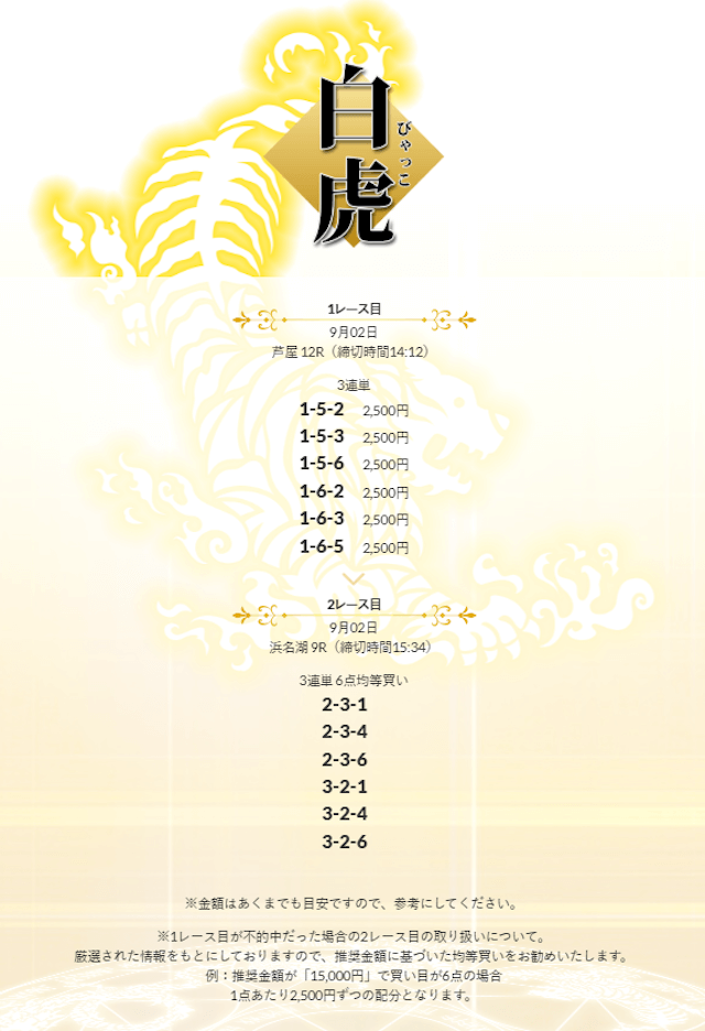 2025/9/2 白虎 情報料金+舟券代 60,000円+15,000円 |