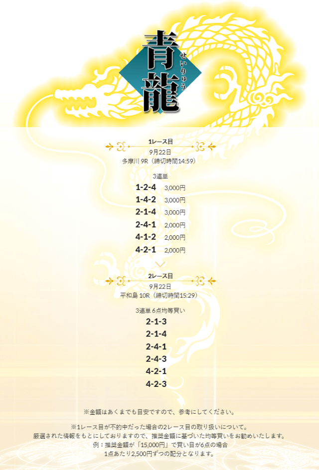 2025/9/22 青龍 情報料金+舟券代 45,000円+15,000円 |