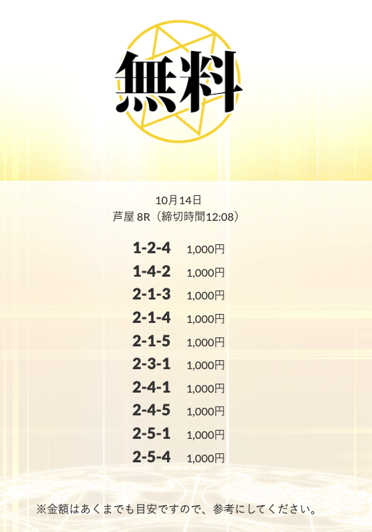 -  無料予想の精度がここまで高いなら、有料予想も期待できると自然に思えた。投稿日:2025/10/02