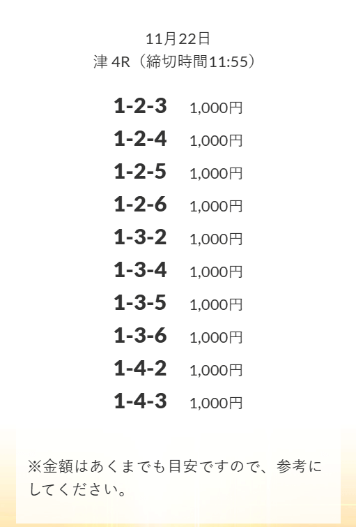 継続的に無料予想に参加し、初回限定プランの「八咫烏」に参加してください。20万円以上を稼げたタイミングで「朱雀」「白虎」あたりに参加。その後は軍資金に応じて2〜3連敗しても大丈夫な範囲で「高額プラン」にチャレンジしていきましょう。