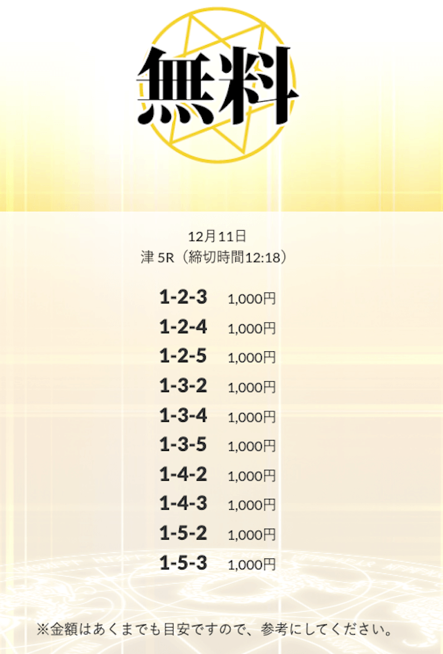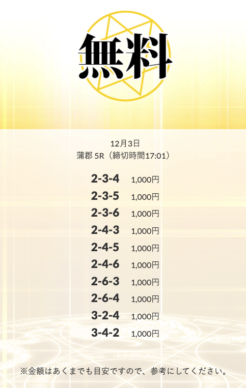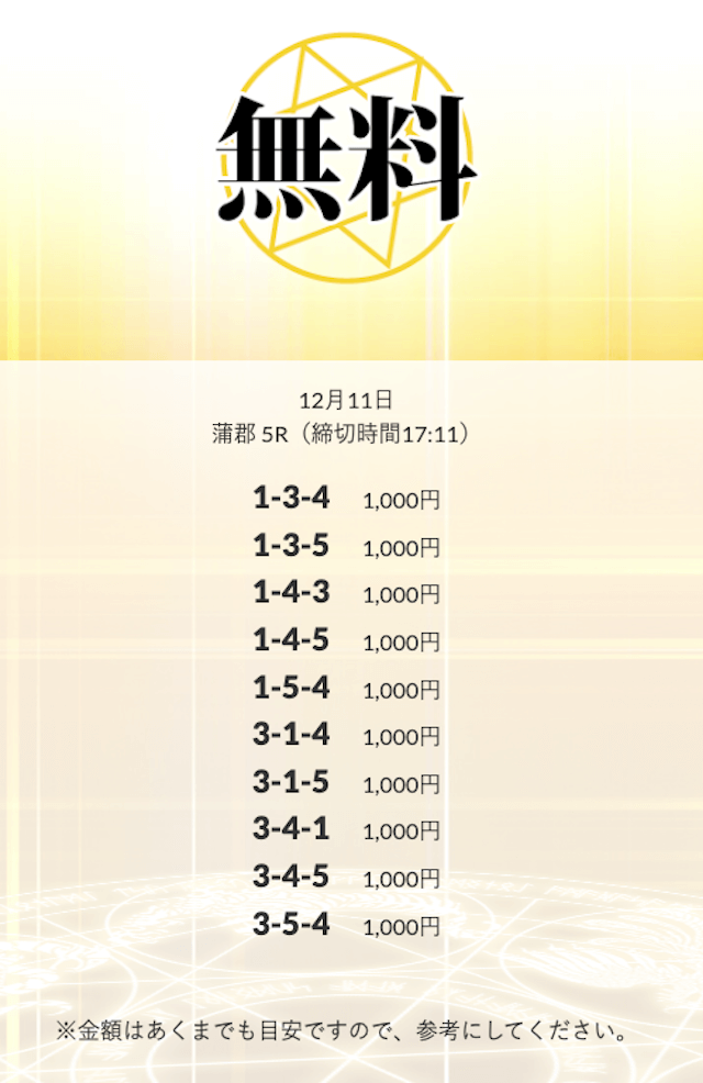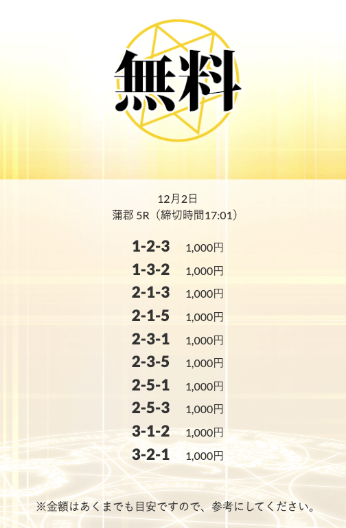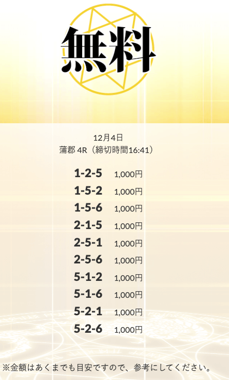 - 無料予想の精度がここまで高いなら、有料予想も期待できると自然に思えた。投稿日:2025/10/02