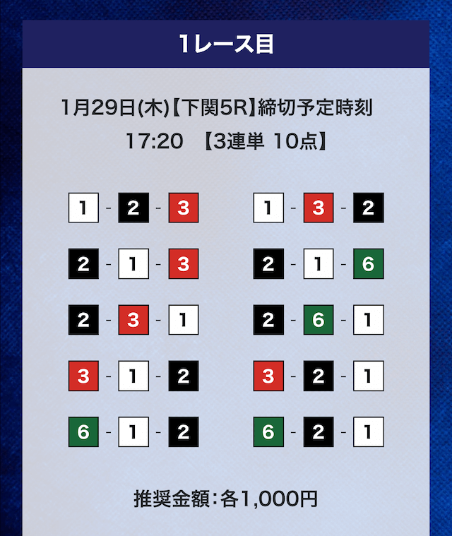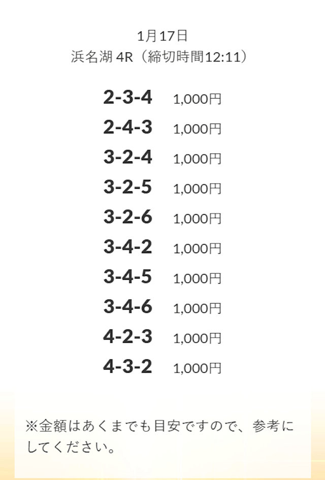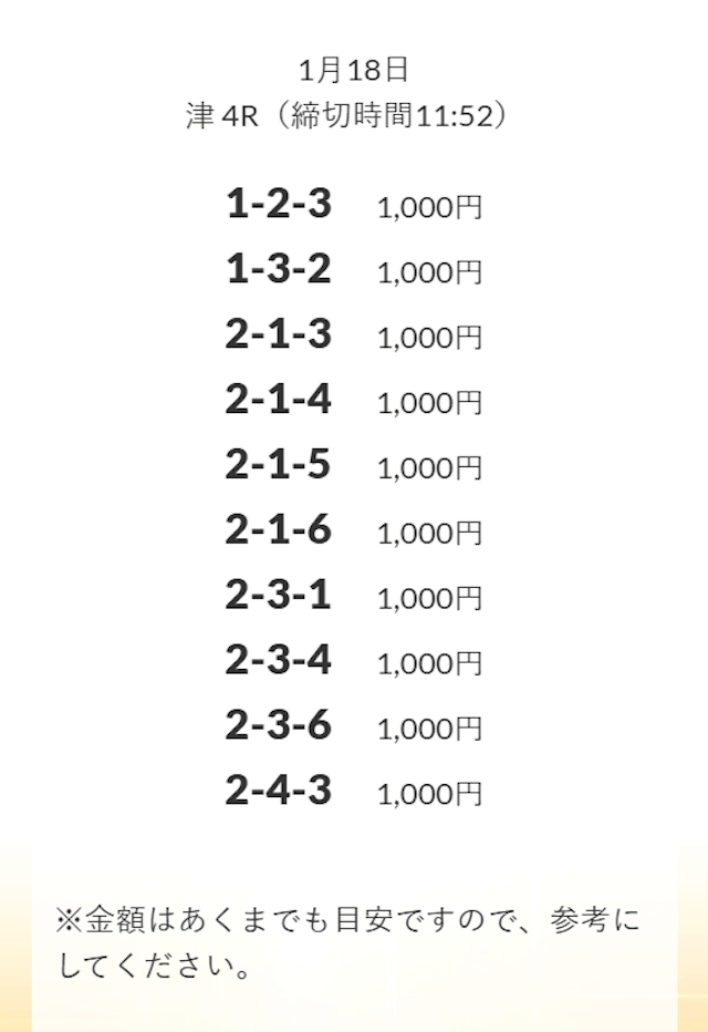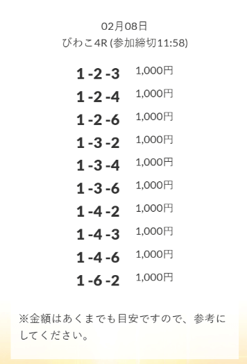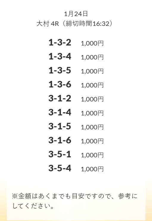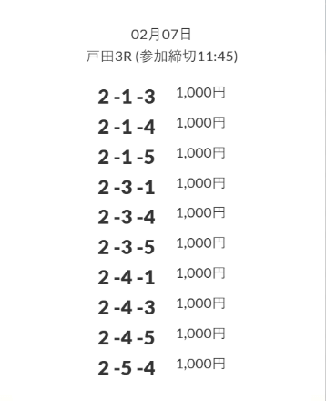 - 券種:3連単(3〜12点)
