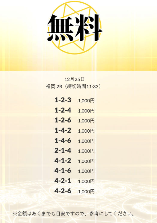 - 財布の中がスカスカで焦ってたとき、無料予想でポンッと当たって2万円。給料日前の俺を助けてくれた。投稿日:2025/12/25