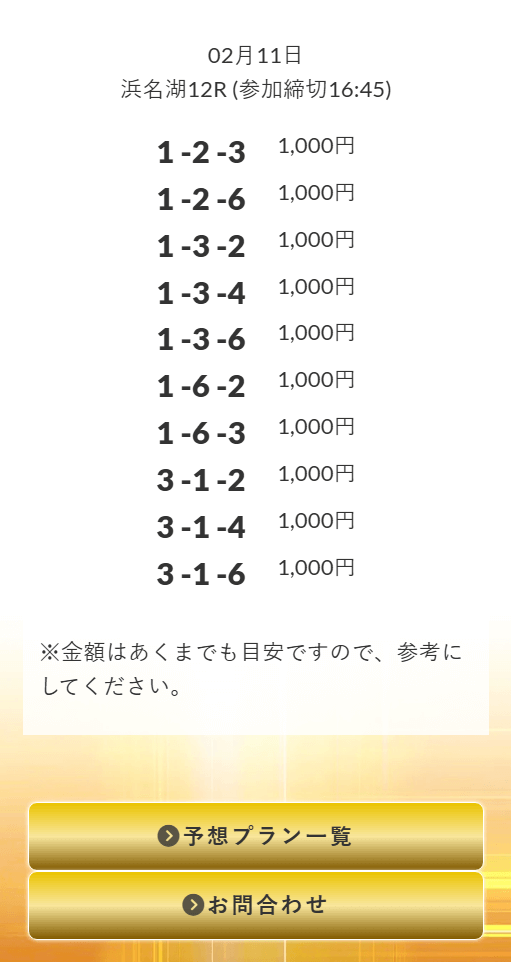 プランが上がっても的中率が上がる訳ではありません。どのプランも的中率50〜70%ほど。そのため無理して高額プランに参加するのはリスクが大きいです。自身の軍資金に見合ったプランを選んでいくと良いでしょう。