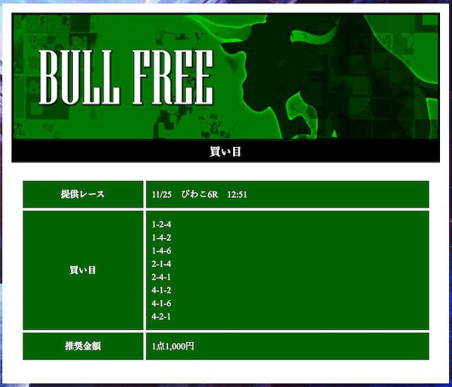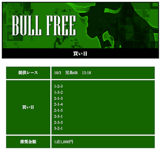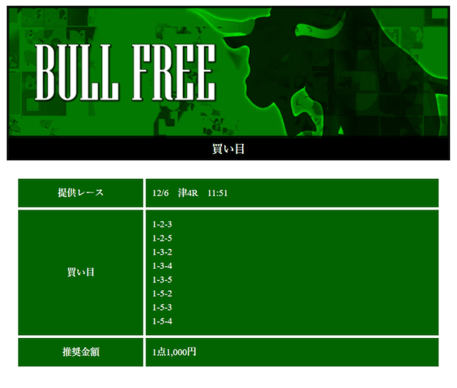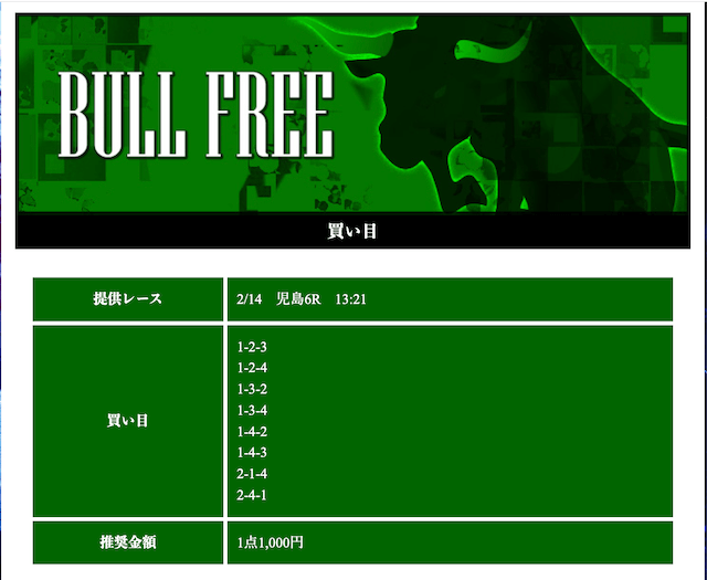 - ブルは無料情報や安めのプランでもしっかり当たりますね。 こういうサイトは安心して有料情報にも手が出せます。投稿日:2018/12/12