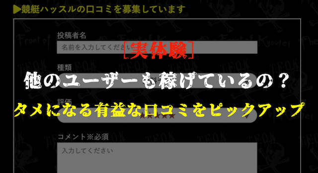 続いて、競艇ハッスルを利用しているユーザーの評判を確認していきます。
