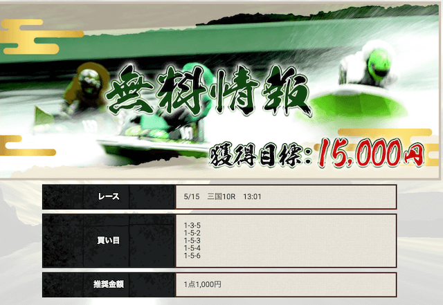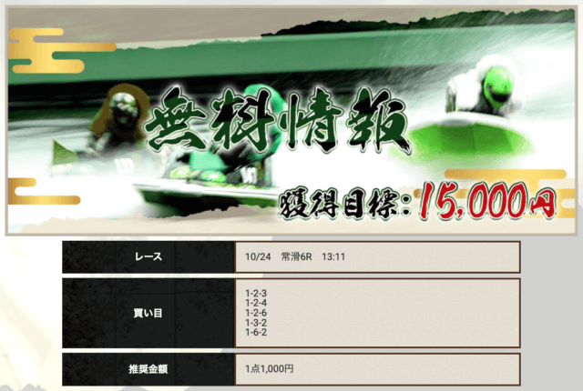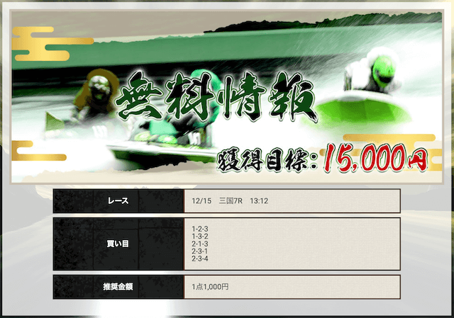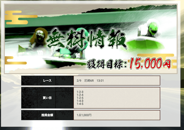 競艇神風の無料予想って的中すると止まらない印象がある。だから俺は的中が続いているタイミングで参加しています。こうすると的中率は90%近くになります!