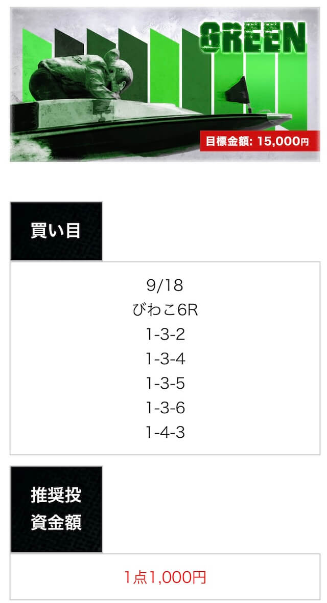 - 無料情報ってどこも8点とか10点とか、結構多めの購入点数で提供してるところが多いんだけど、競艇ライナーは5点で少なめ。 だから硬めの買い目になってる事が多いわりに利益はコンスタントに出せてる。と言っても1,000円とか2,000円が多いからそれプラスに調子良いときに有料予想使うかって感じなんだけどね。 推奨購入金額増やして当たった時の金額増やして、的中実績でさも高額配当当たった、みたいにしてるサイトもあるけど競艇ライナーは誠実なイメージ。連勝してる時はチャンス。投稿日:2019/09/23