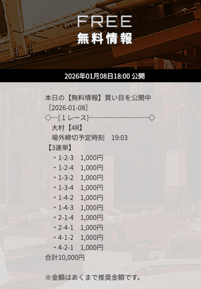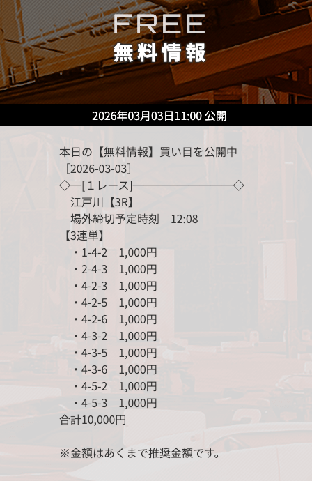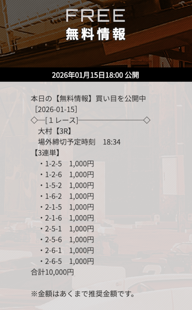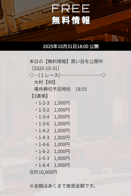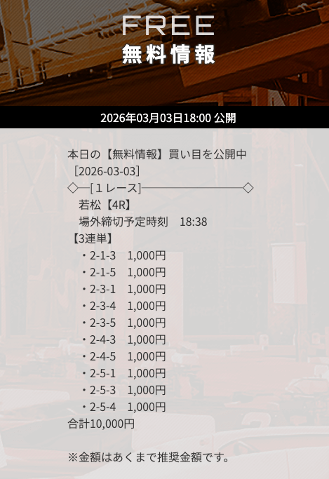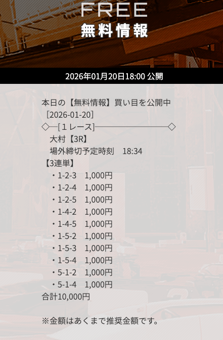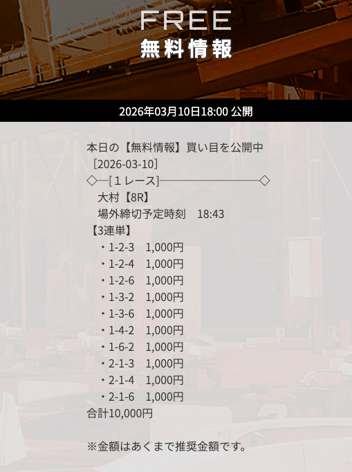 | 10/3 | 大村8R | 不的中 | 0円 |  |