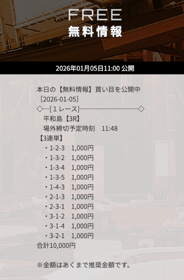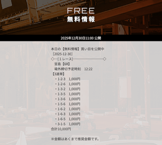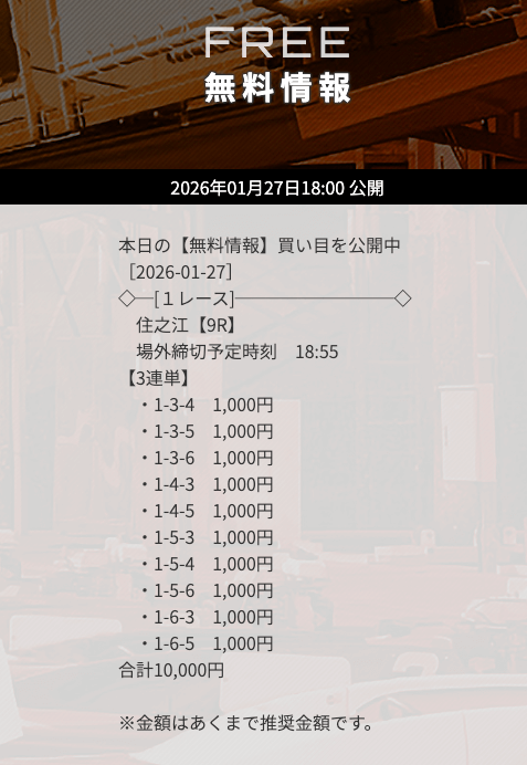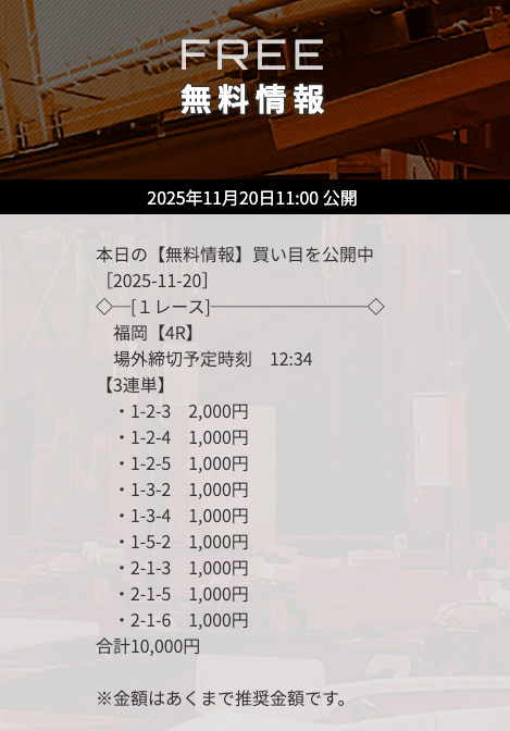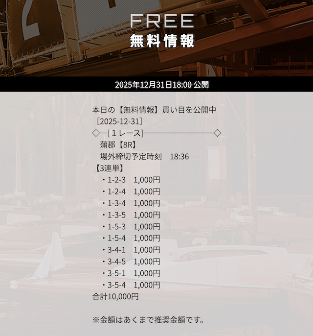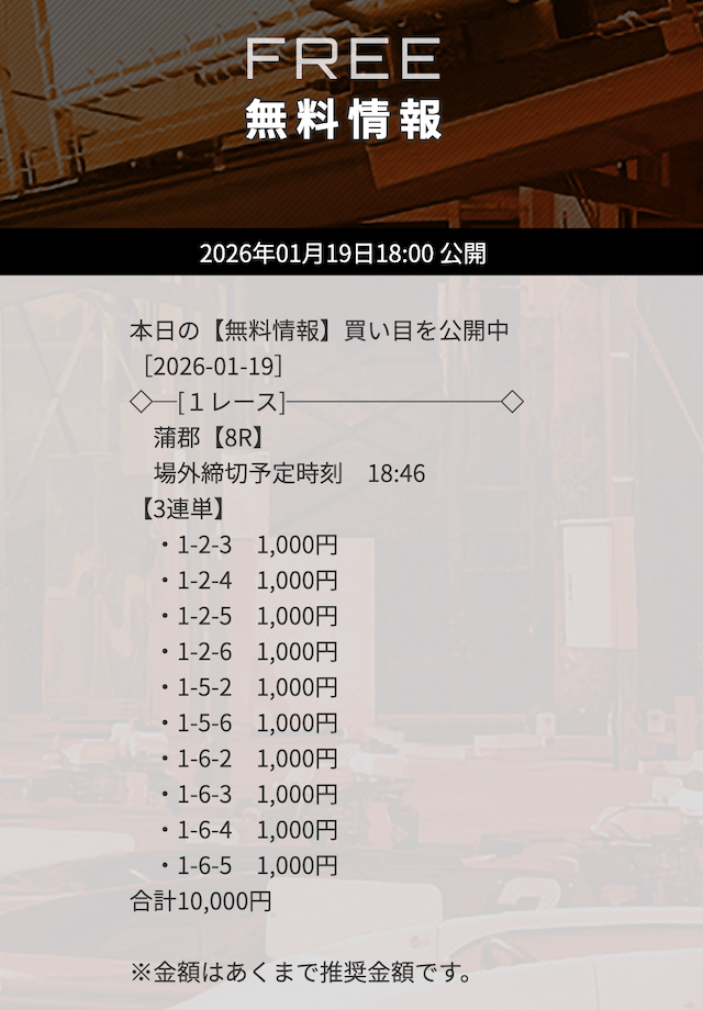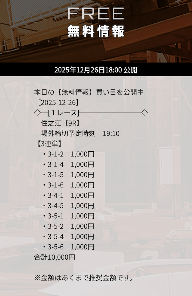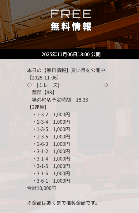情報料金は18,000円と非常に安価なため、これぞローリスク・ハイリターン!